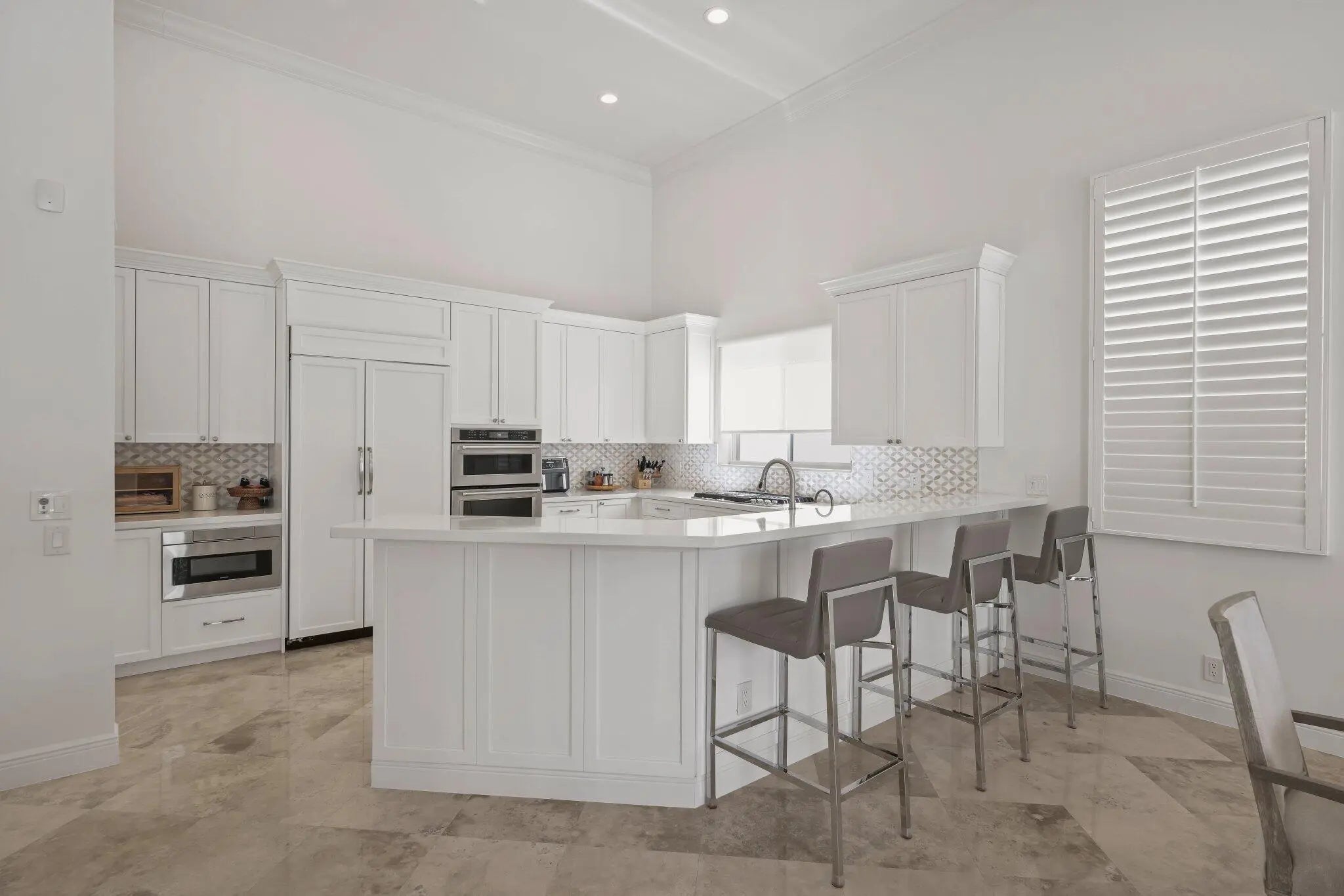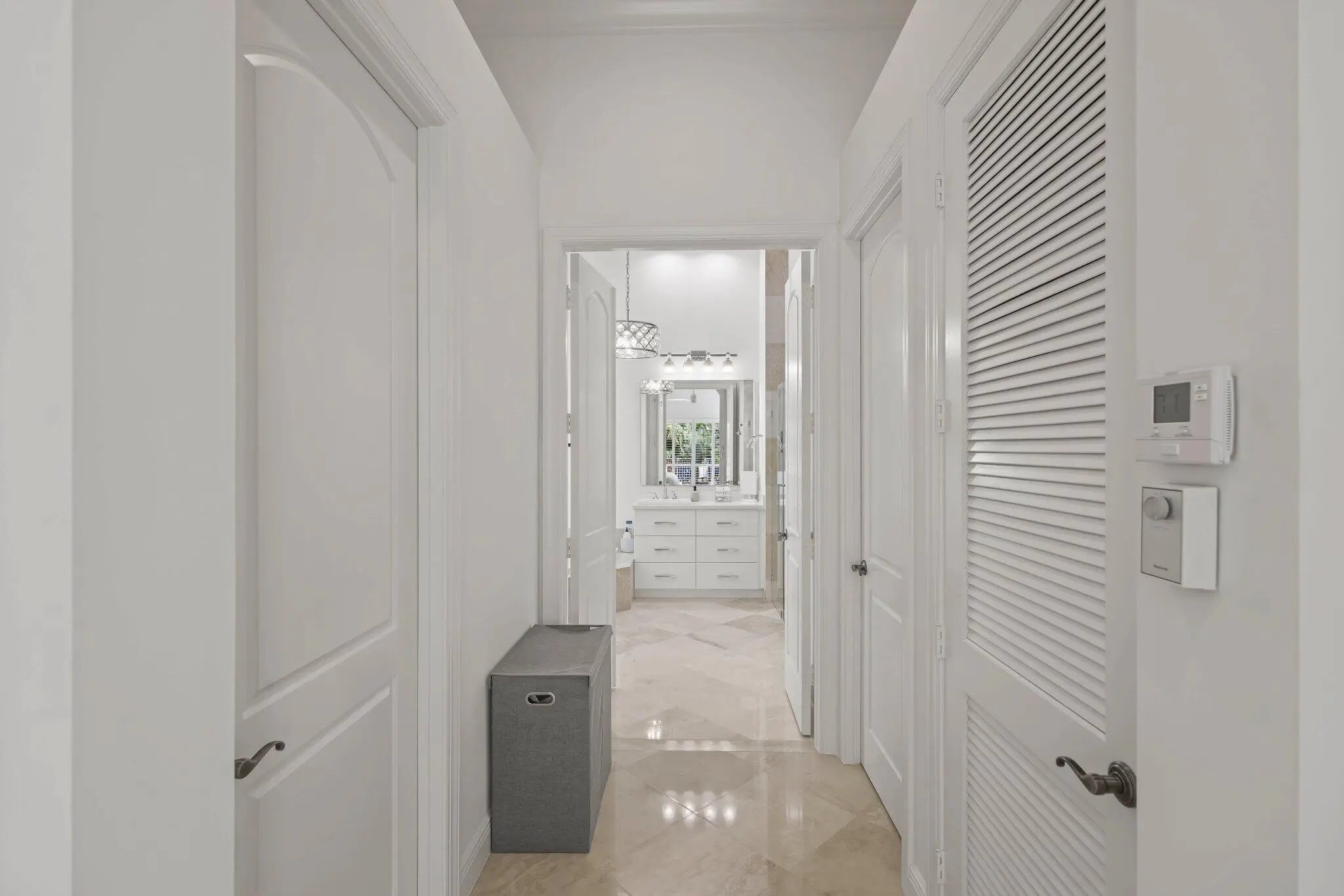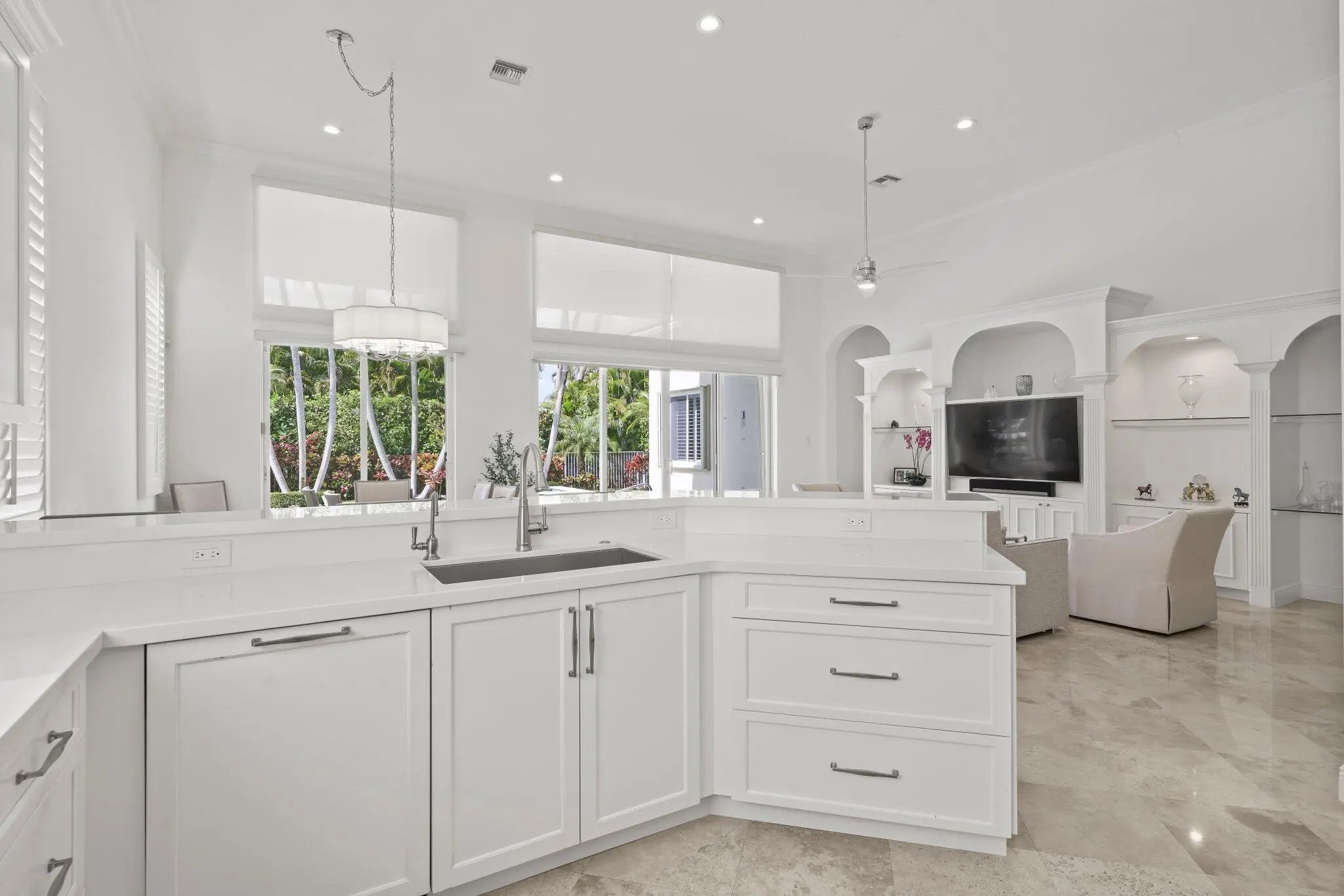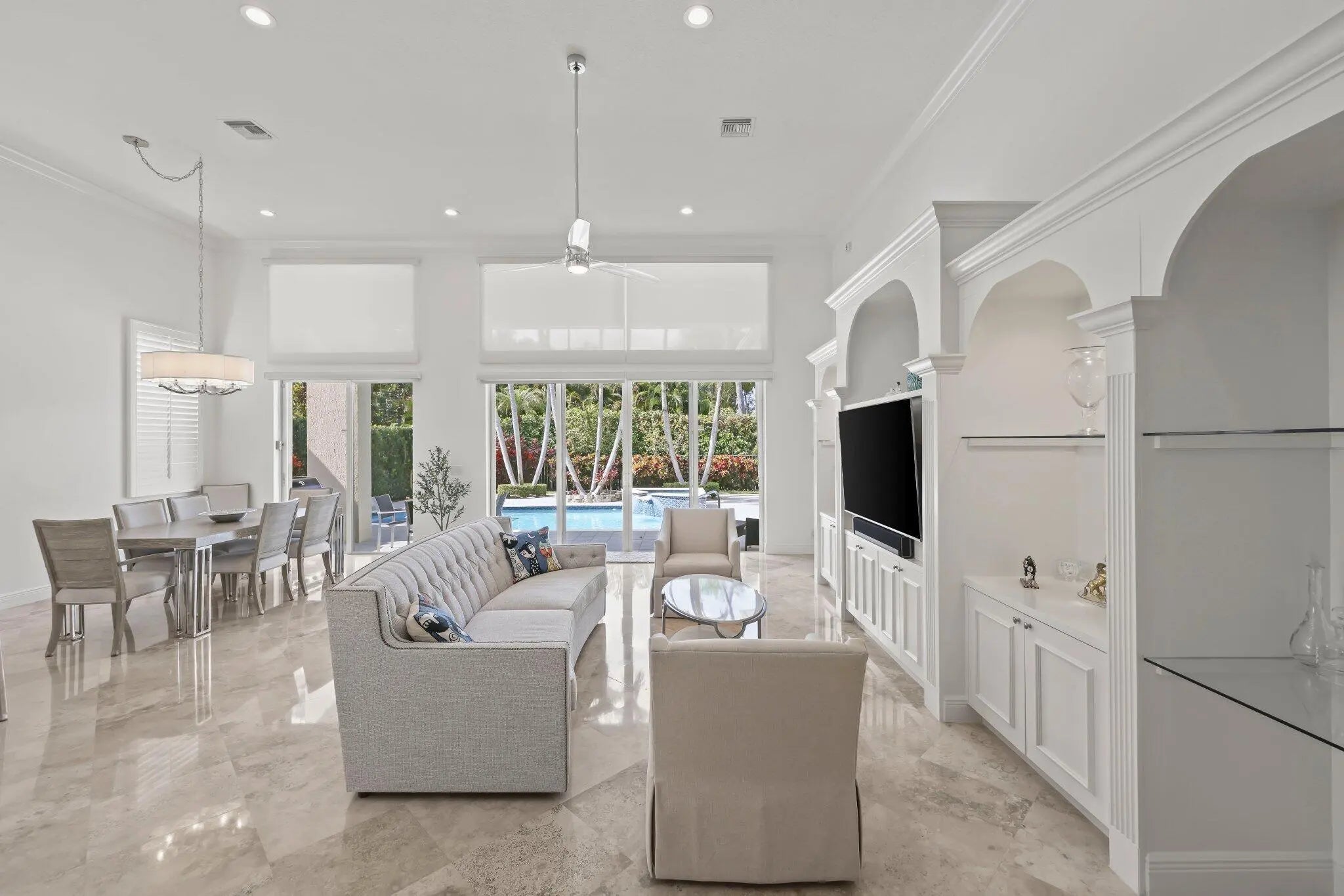 This elegant one-story residence located in Boca Grove Country Club offers 3 Bedrooms/3.5 Baths plus an office and den in a thoughtfully designed split floor plan. Open living areas showcase a great room with custom wall unit overlooking a lushly landscaped, private backyard retreat. The chef's kitchen features a five-burner gas cooktop, stainless steel appliances and quartz counter tops. The spacious primary suite includes dual closets and a luxurious bath, while two additional guest bedrooms offer ensuite baths. Enjoy a heated saltwater pool and spa with an expansive patio ideal for entertaining or relaxing outdoors. A full house generator and three year old roof provide added peace of mind. Ideally located near fine dining, great shopping and houses of worship.
