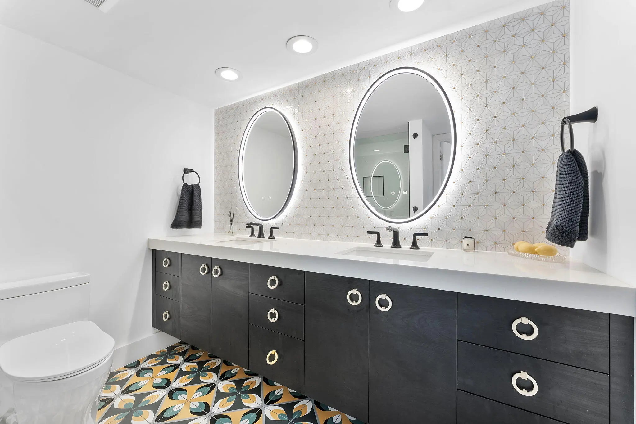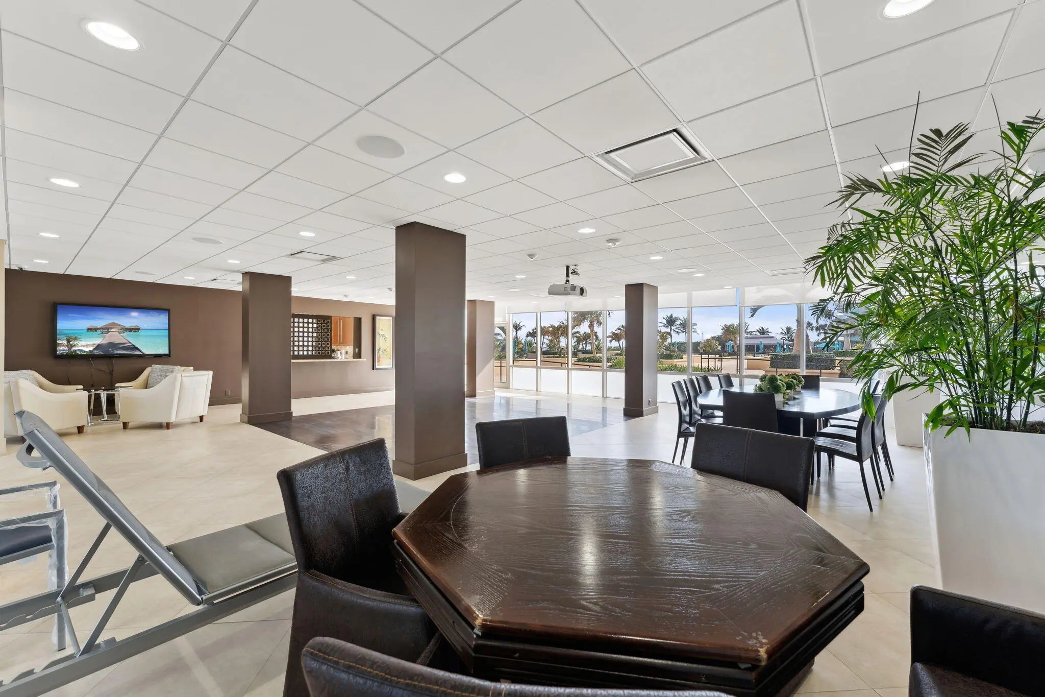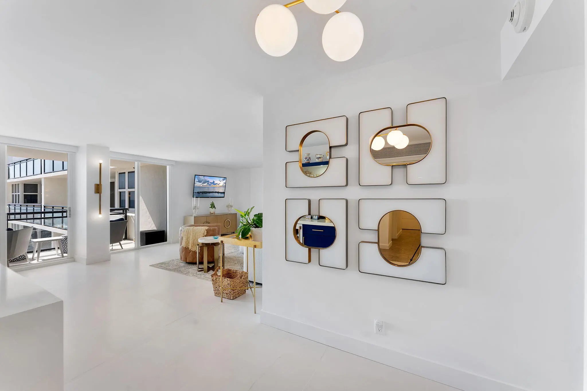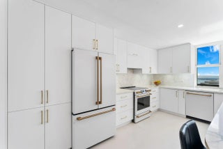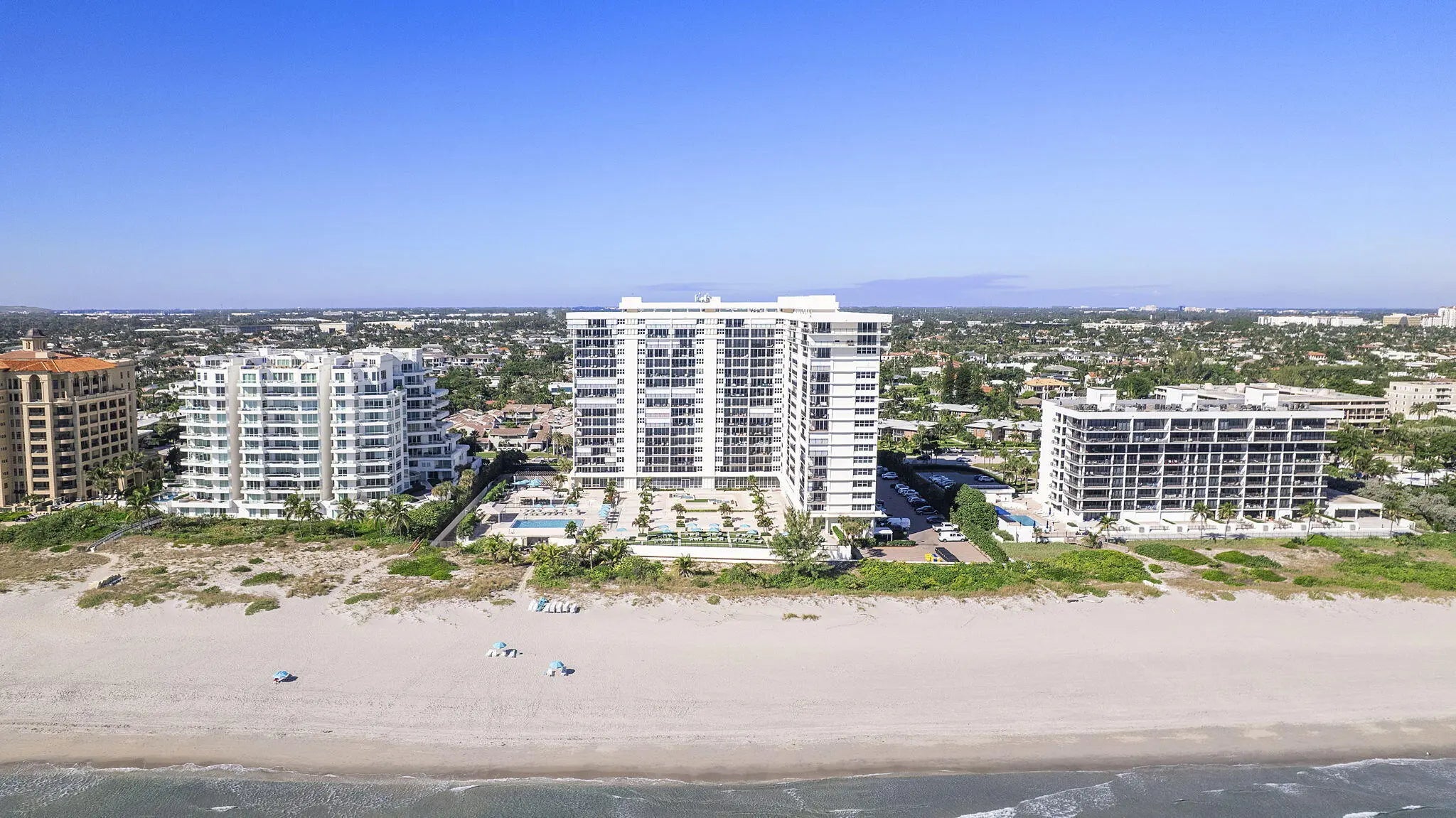 Experience elevated coastal living in this stunning Lower Penthouse residence, beautifully renovated in 2023 with unique high-end finishes and thoughtful design throughout.Located in Whitehall, a luxury oceanfront high-rise in Boca Raton, this exceptional home offers the perfect blend of modern sophistication and resort-style amenities.Step into a large, bright open-concept living and dining area featuring large format dolomite porcelain floor tile and designer lighting that create a warm yet contemporary ambiance. The white matte and gold tone kitchen is the centerpiece of the home, showcasing a striking quartzite island, custom cabinetry, and elegant water-cut marble accents. Entertain effortlessly at the custom-built bar, complete with a wine fridge, cabinetry, and open shelving