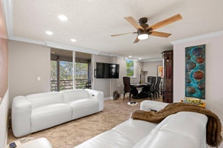 Welcome to this beautifully maintained, move-in-ready residence in the heart of East Boca. This spacious 2-bedroom, 2-bath home features elegant crown molding throughout and a thoughtfully designed split-bedroom floor plan for added privacy.The upgraded kitchen offers stainless steel appliances, granite countertops, neutral wood cabinetry, and the convenience of an in-unit washer and dryer. A versatile convertible room with a closet and window is currently used as a formal dining room but can easily serve as a third bedroom, office, or den.The generous primary suite boasts new carpeting, oversized walk-in closets, a private ensuite bath, and direct access to the covered, screened balcony. The second bedroom also features new carpeting and its own ensuite bath with a