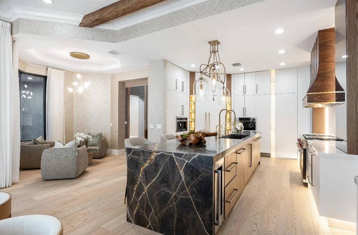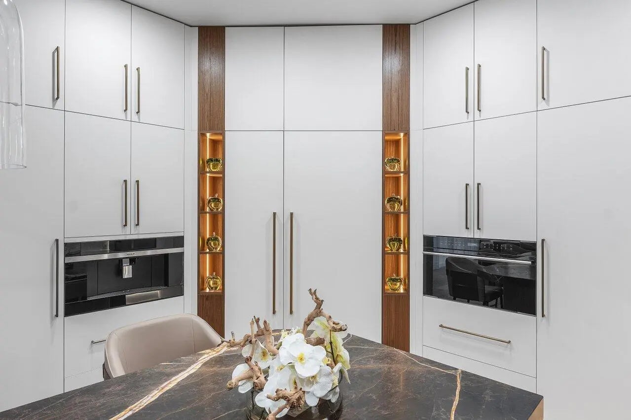 Built-in Shelves, Custom Mirror, Decorative Fireplace, Entry Lvl Lvng Area, Kitchen Island, Pantry, Volume Ceiling, Walk-in Closet