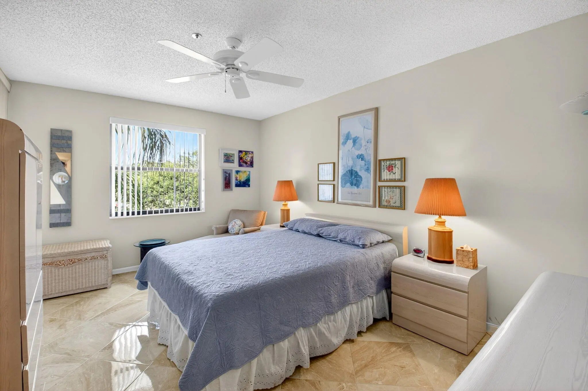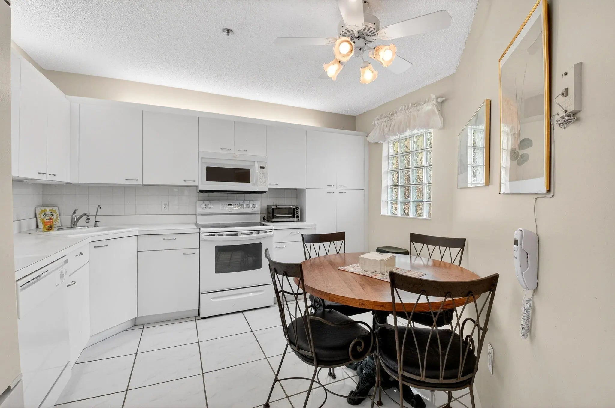 Welcome to this spacious three-bedroom, two-bath Especial Model in the popular Excellente Village at Platina. This well-maintained residence is in a building featuring a new elevator maintained by the Association adding convenience and peace of mind. Inside, you'll find vaulted ceilings in the living room creating an open and airy feel, along with tile flooring throughout the entire home for easy maintenance. The eat-in kitchen provides comfortable space for casual dining, and the sought-after interior laundry closet (a signature feature of the Especial model) adds everyday practicality. The thoughtfully designed split-bedroom floor plan offers privacy for owners and guests alike. Enjoy additional living space on the glass-enclosed balcony,