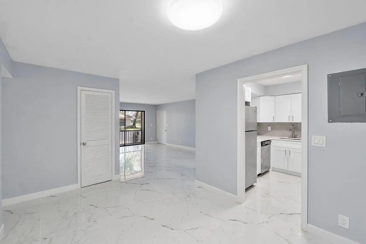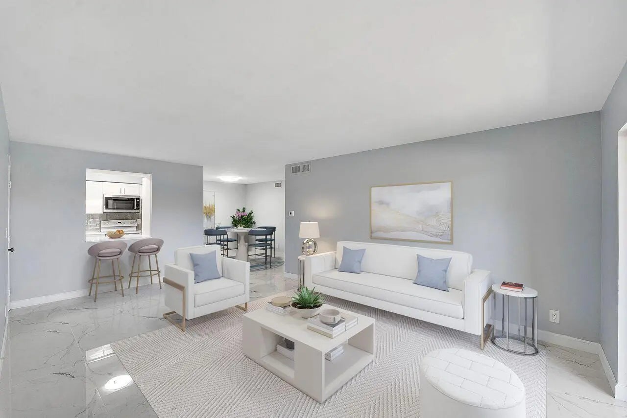 Tastefully remodeled and ready for the new owner, this 2 BR 2 BA first floor condo features a full size Washer/Dryer. Located in the all age gated community of Bent Tree Gardens West in the heart of Boynton Beach, this lovely unit features gorgeous porcelain tile floors throughout. The entire condo is decorated in soft neutrals, grays and whites including white shaker cabinetry finished off with quartz counterstops. No Popcorn ceilings! This great community is close to both the turnpike and I95 giving easy access for work commuting or airport runs. Why rent when you can own and have control of your monthly payments? This is a great opportunity to purchase your first home.