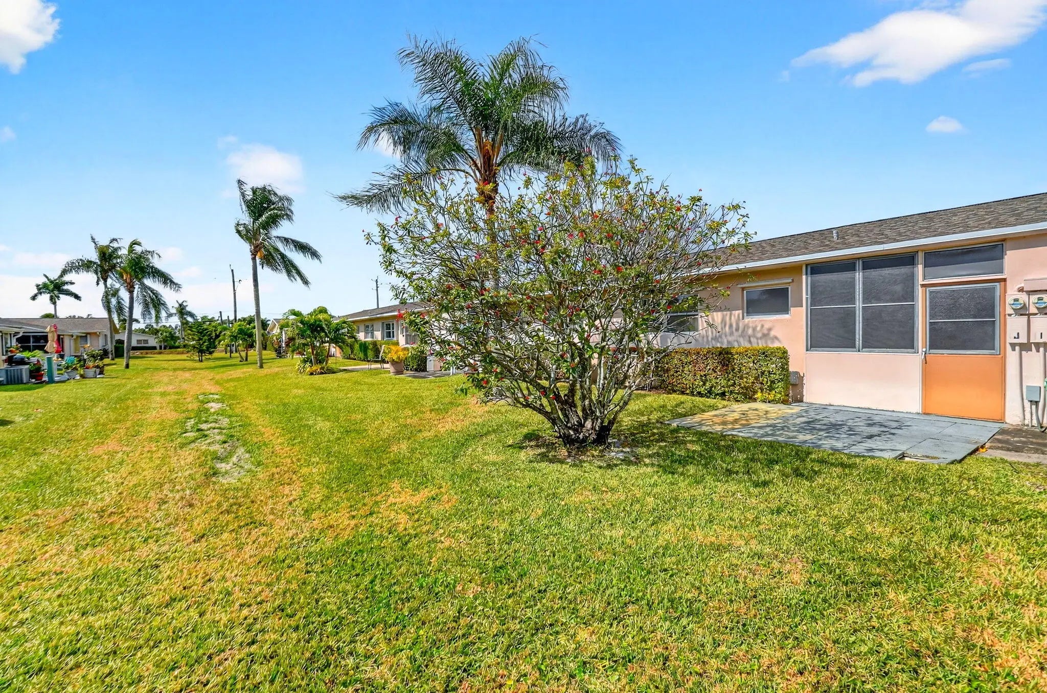 Welcome to this beautifully updated 2-bedroom, 2-bathroom one-story villa in the heart of West Palm Beach. This well-maintained home offers comfort, style, and convenience in a quiet, amenity-rich community. The updated kitchen features attractive cabinetry, granite countertops, and plenty of workspace--perfect for everyday living and entertaining. Both bathrooms have been refreshed with new vanities and toilets, while the spacious primary bedroom boasts new laminate flooring and abundant closet space. Additional upgrades and features include new ceiling fans, multiple storage closets, accordion shutters for storm protection, and a screened patio with an additional storage room. Enjoy outdoor living on the paved patio surrounded by tasteful landscaping--ideal for relaxing or hosting guests