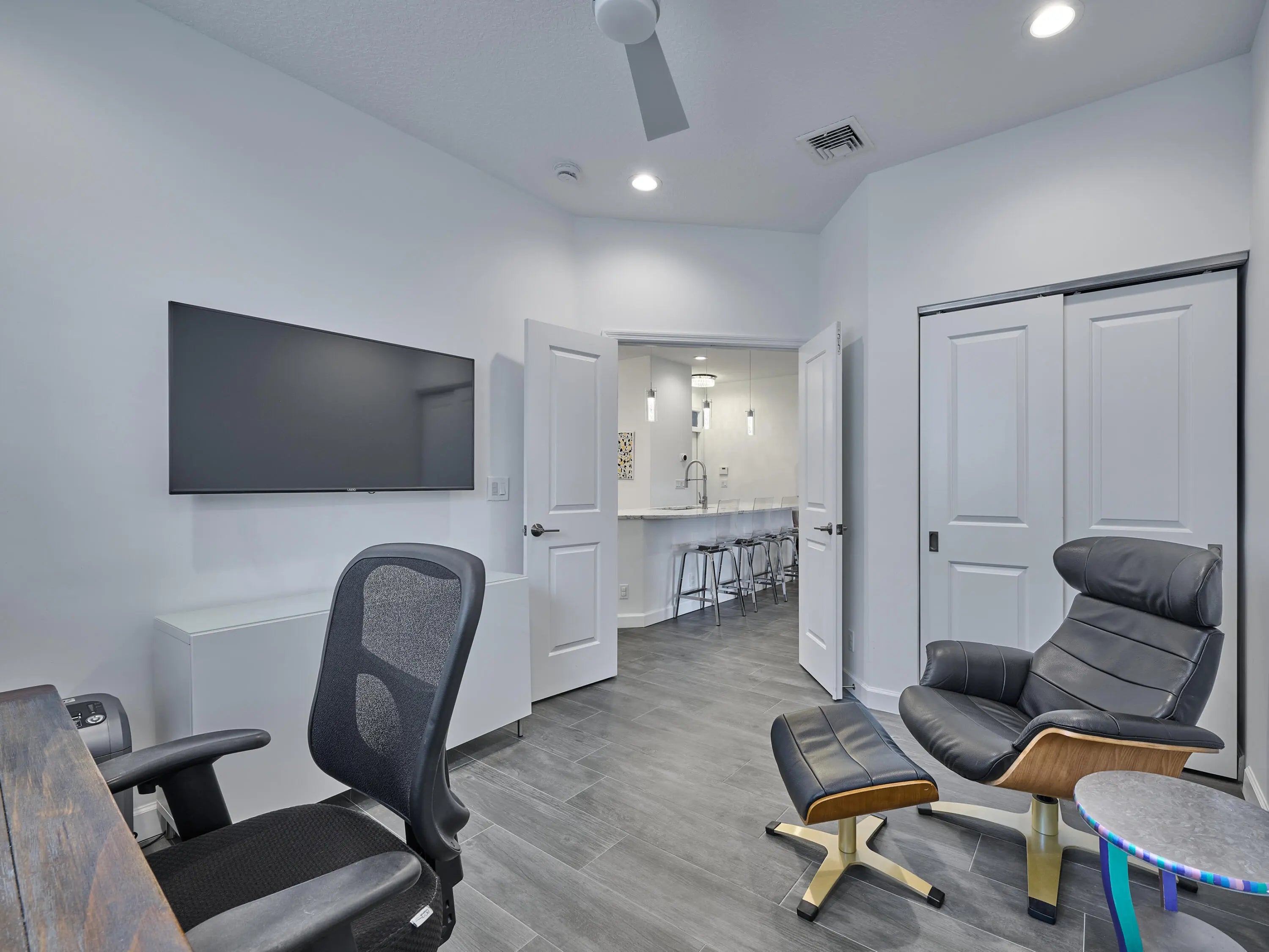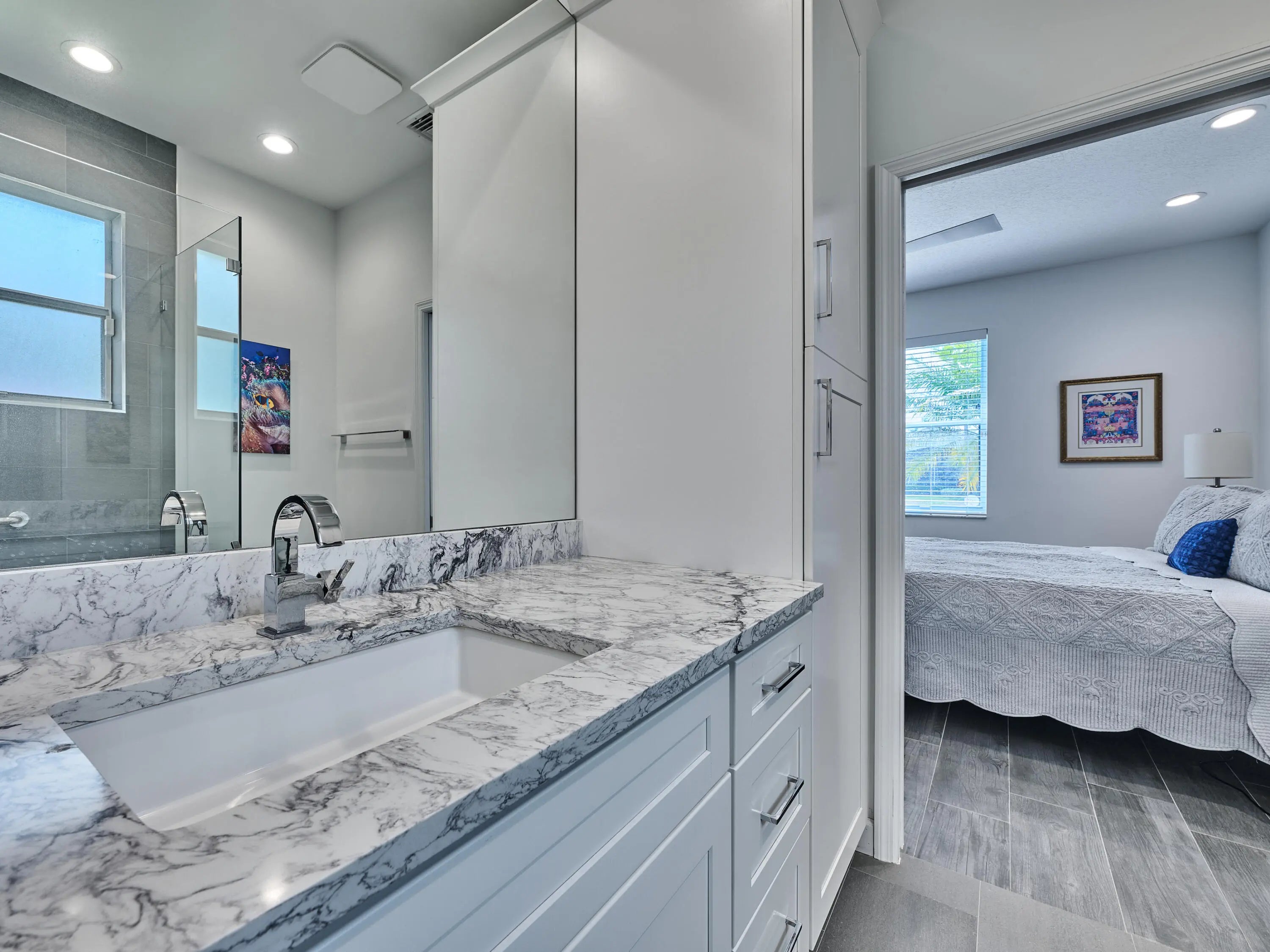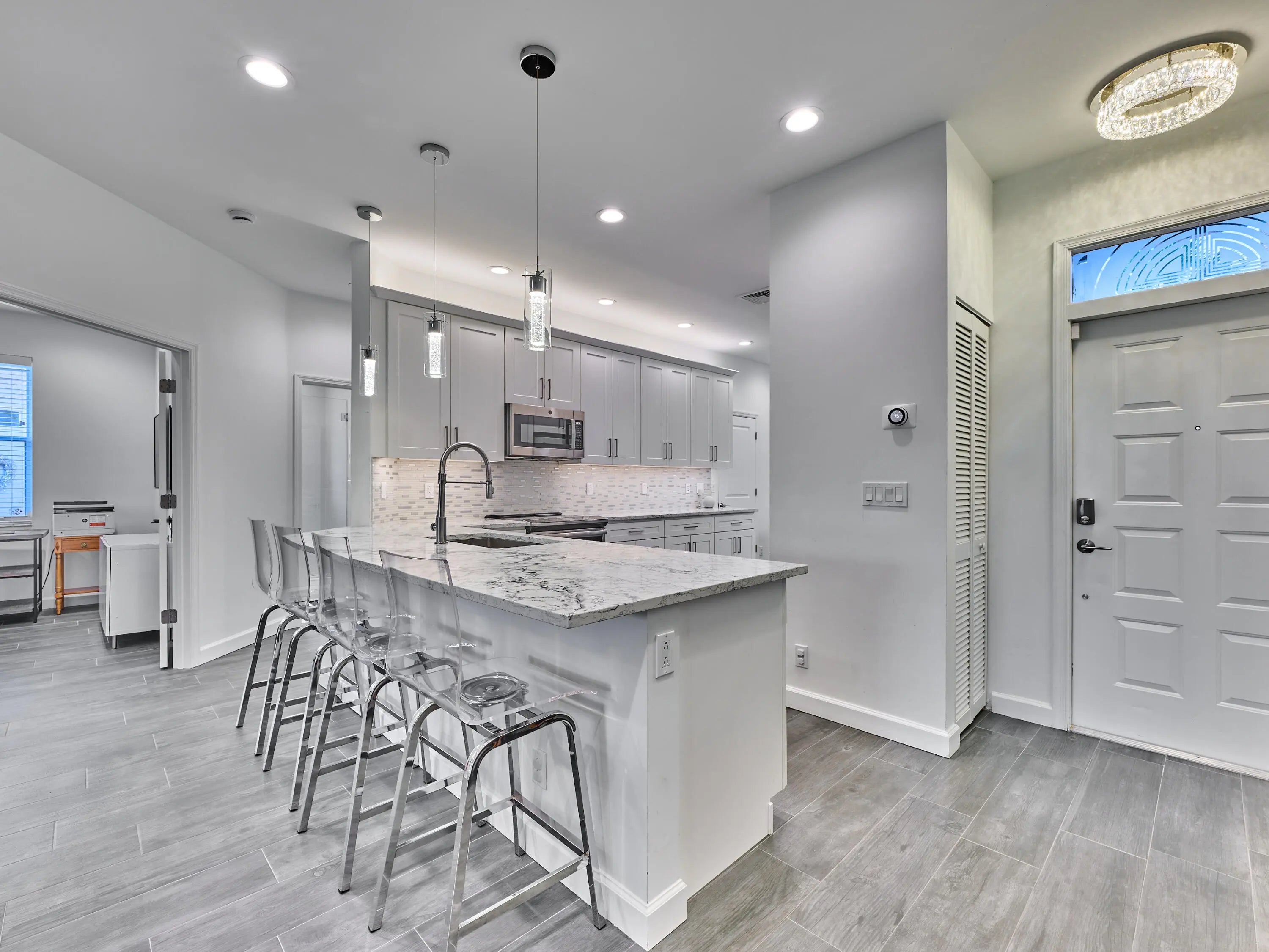 Set within the gates of the highly sought-after active adult community of Majestic Isles, 5786 Island Reach Lane presents a rare opportunity to own a fully reimagined waterfront villa where design, quality, and lifestyle converge.Meticulously updated and impeccably maintained, this residence showcases a refined, open-concept floor plan designed for effortless living and elegant entertaining. The heart of the home is a stunning chef's kitchen appointed with timeless shaker cabinetry, quartz countertops, a striking glass tile backsplash, and newer GE stainless steel appliances. Abundant recessed lighting enhances the home's clean architectural lines and creates a warm, sophisticated ambiance throughout.