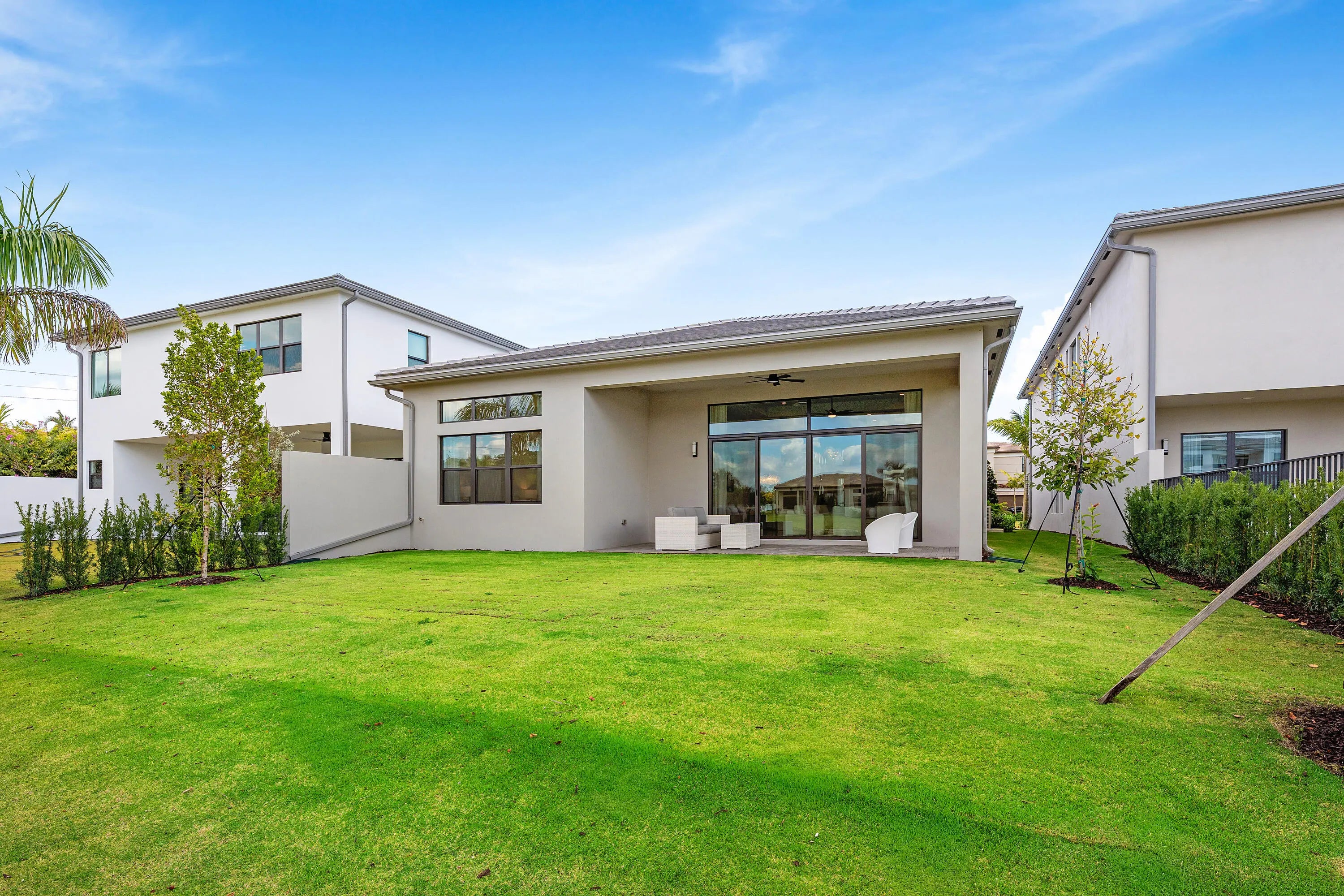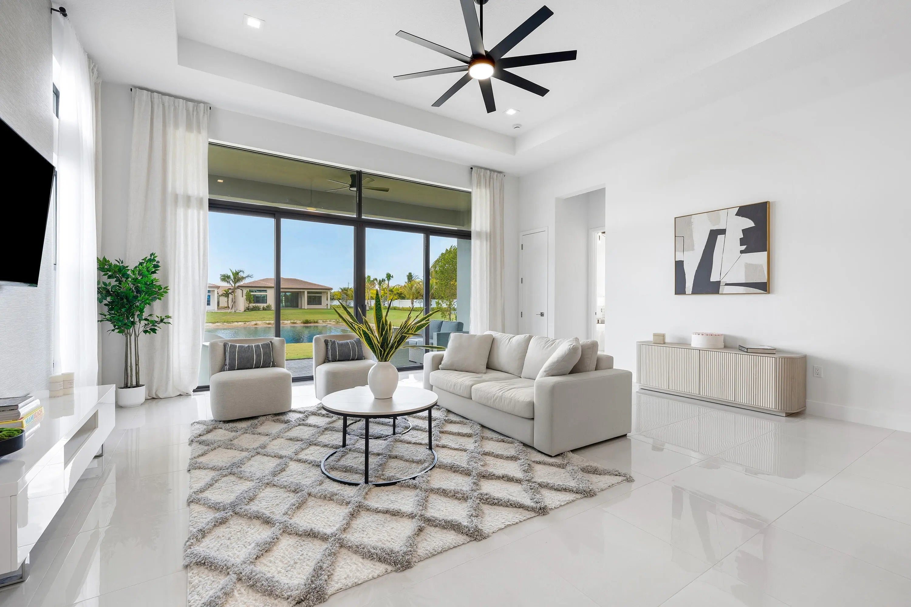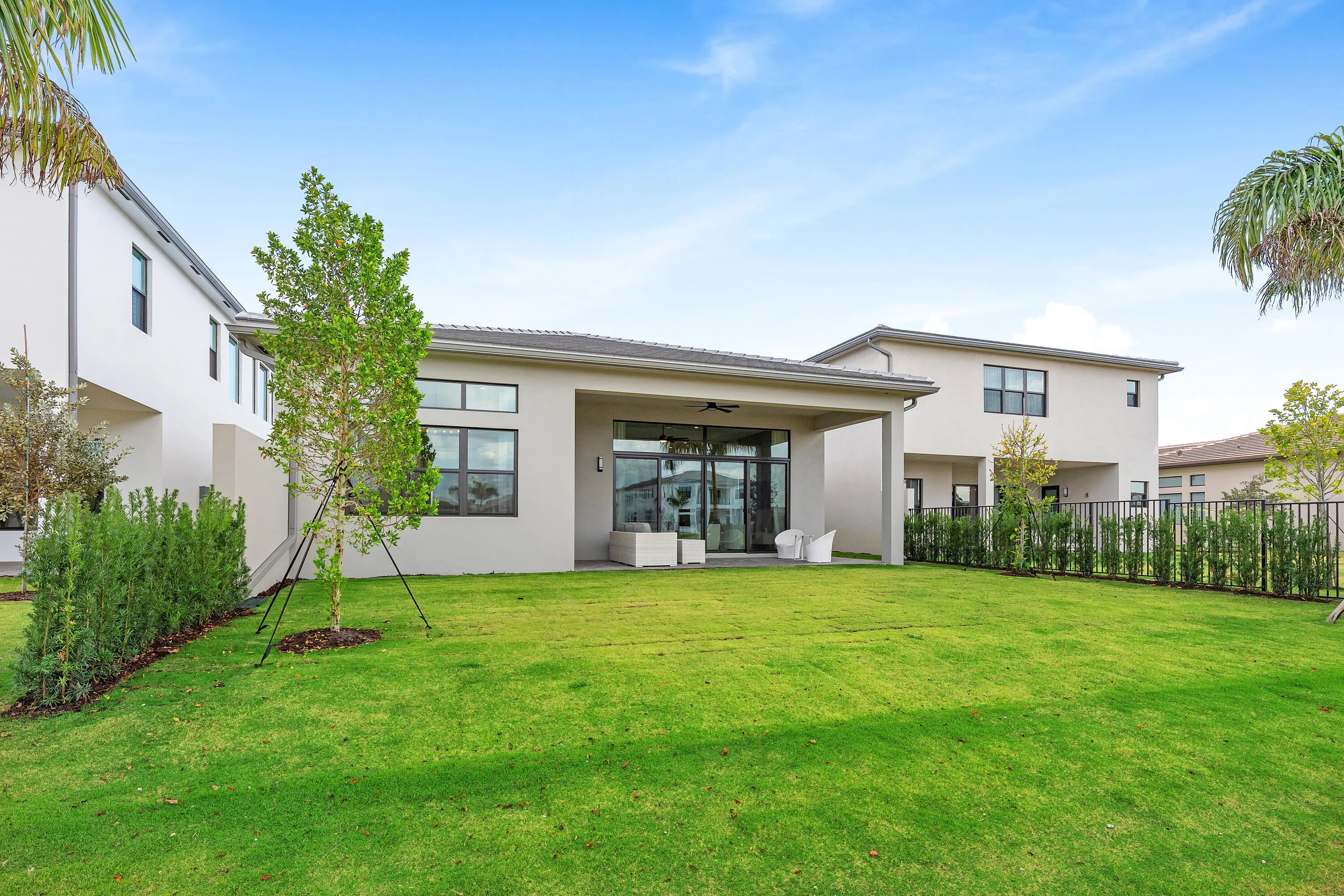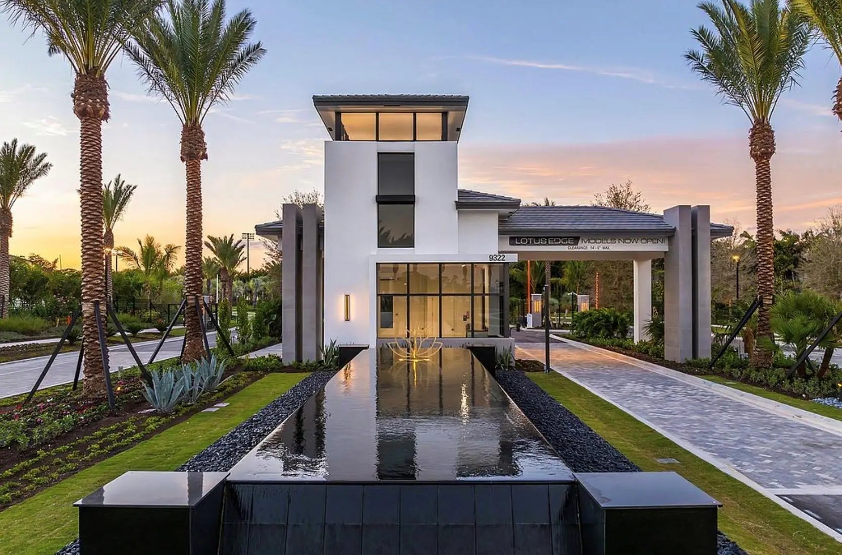 Welcome to refined modern luxury, resort-style living in the prestigious, guard-gated community of Lotus Edge in Boca Raton, where the grass and vegetation makes you feel like your in a tropical resort. This exceptional Bermuda model 3-bedroom, 3.5-bathroom residence, never before lived in, blends clean architectural lines, soaring ceilings, and seamless indoor-outdoor flow with serene water views. From the moment you enter, you're greeted by expansive open living spaces filled with natural light and enhanced by oversized windows, designer lighting, and polished tile flooring throughout the main areas. The thoughtfully designed floor plan offers both functionality and elegance, ideal for everyday living and effortless entertaining.