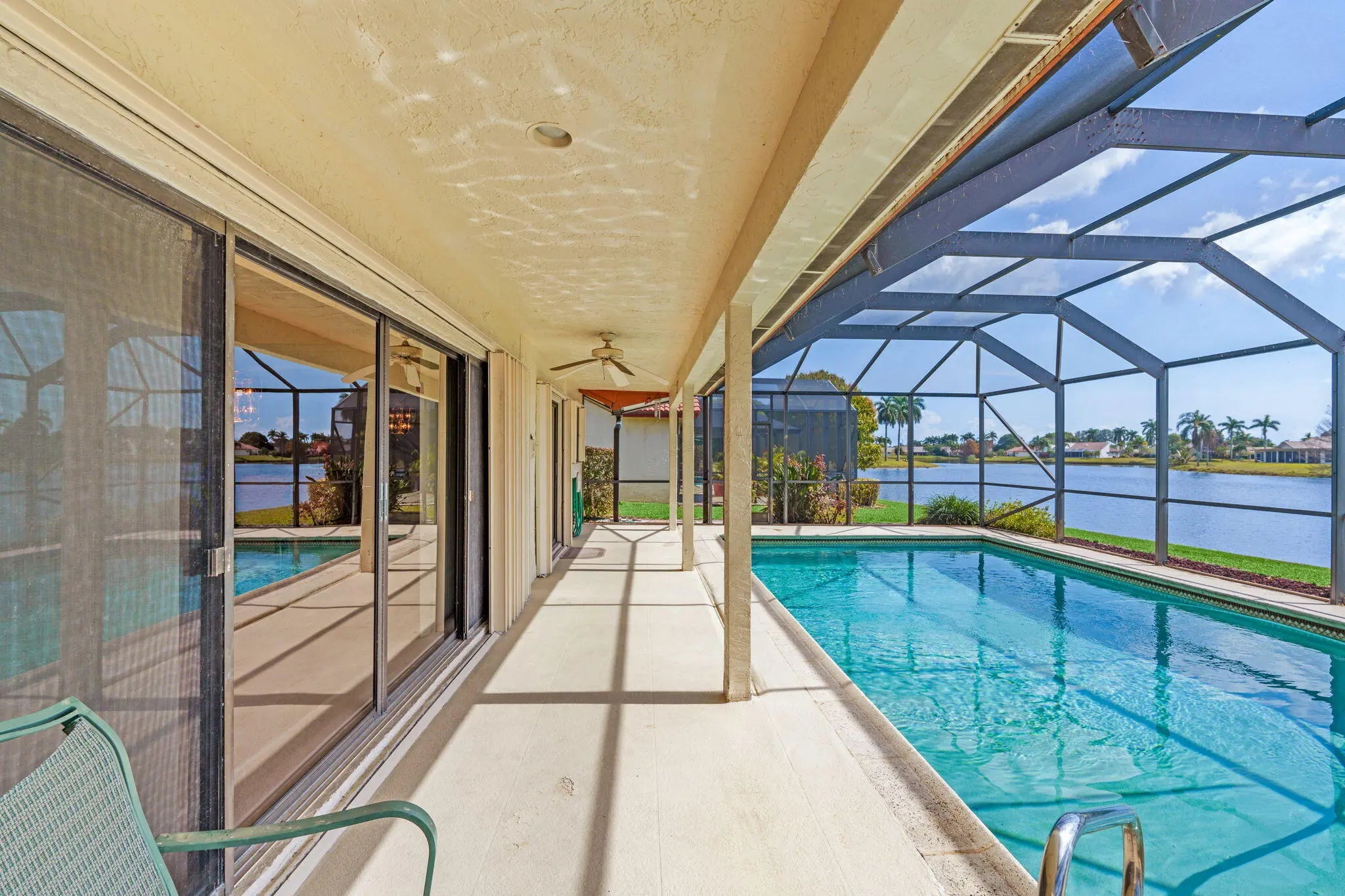 Welcome to this beautiful home offering 3 bedrooms and 2.5 baths in Boynton Beach, Florida, nestled within an exclusive gated community. This well-maintained residence features a two-car garage and key updates including a 2021 AC and 2023 hot water heater. The thoughtfully designed floor plan creates an effortless flow between living spaces, ideal for both everyday living and entertaining. A stylish wet bar enhances the main living area, while the bright kitchen showcases white cabinetry and generous workspace. Spacious bedrooms provide a private retreat, highlighted by a serene primary suite designed for relaxation.Enjoy tranquil lake views from your expansive patio and spacious lot, creating an inviting backdrop for outdoor living. The private pool and spa offer the perfect setting