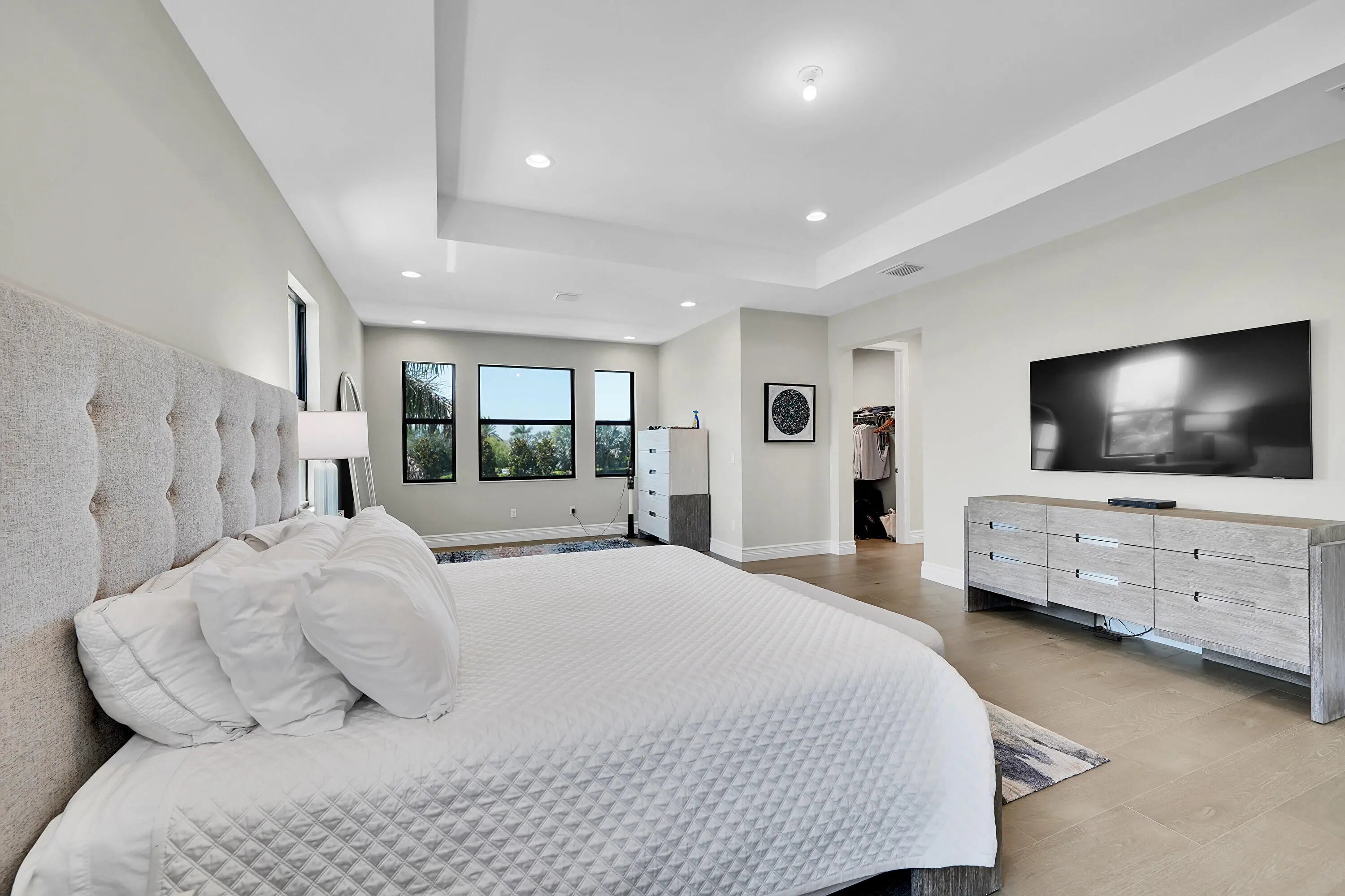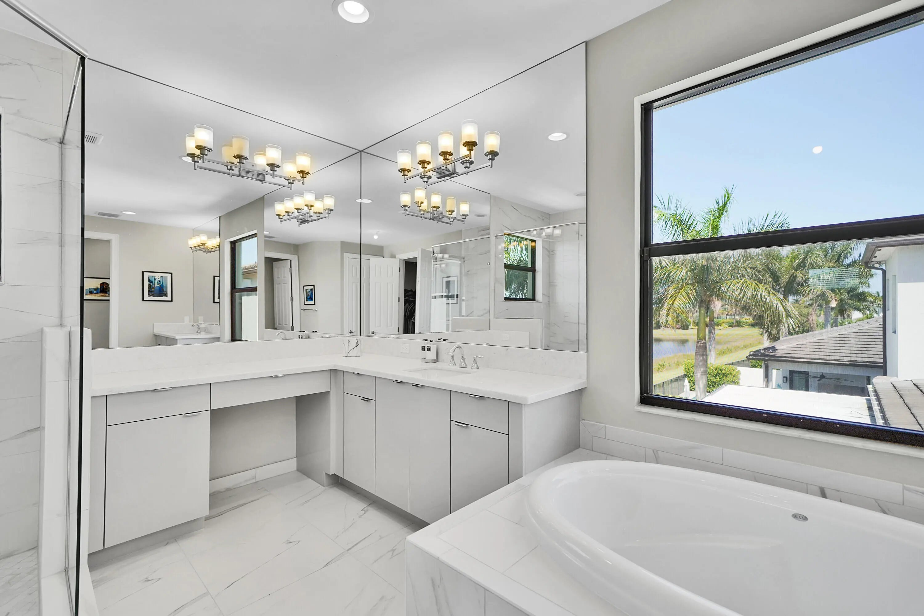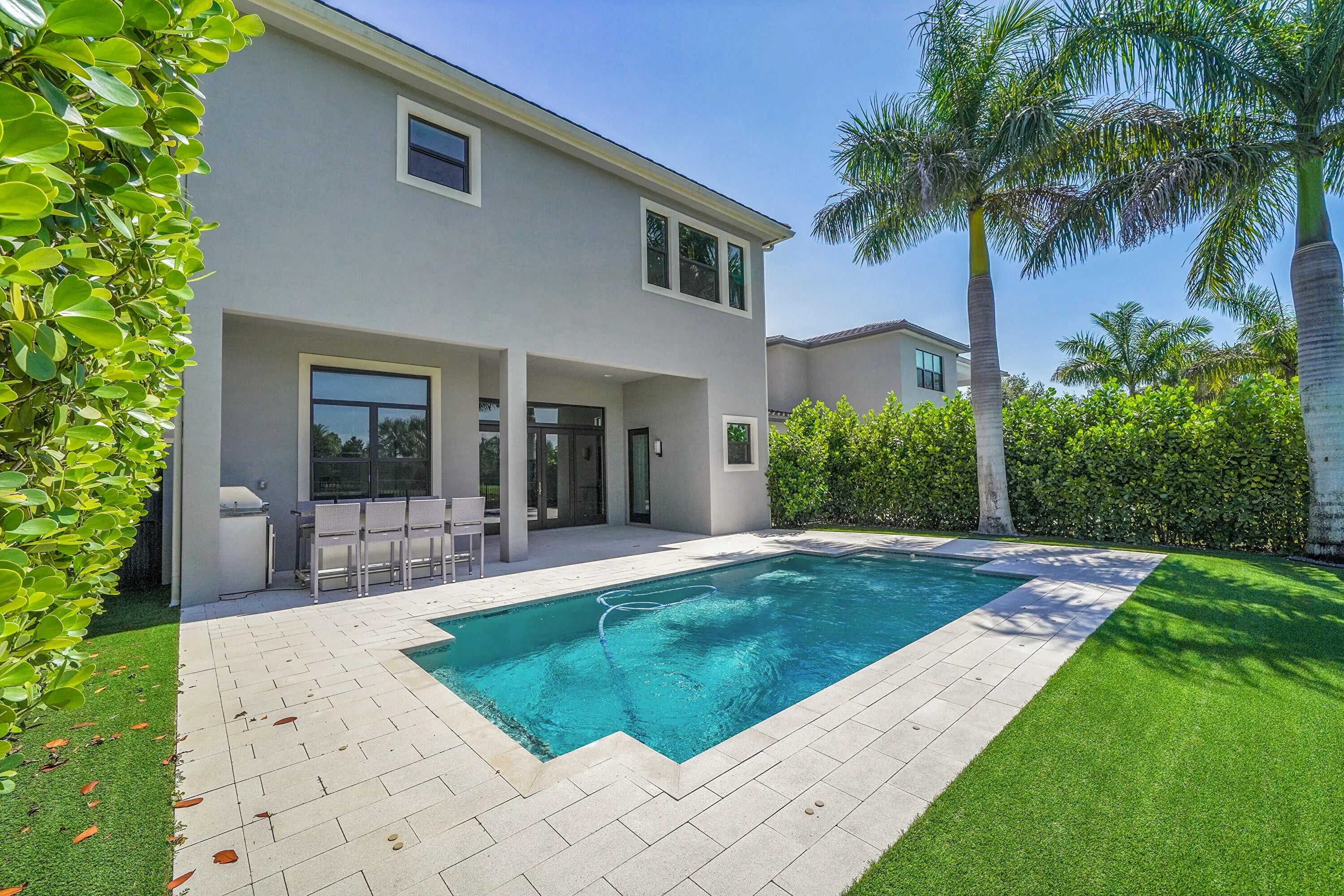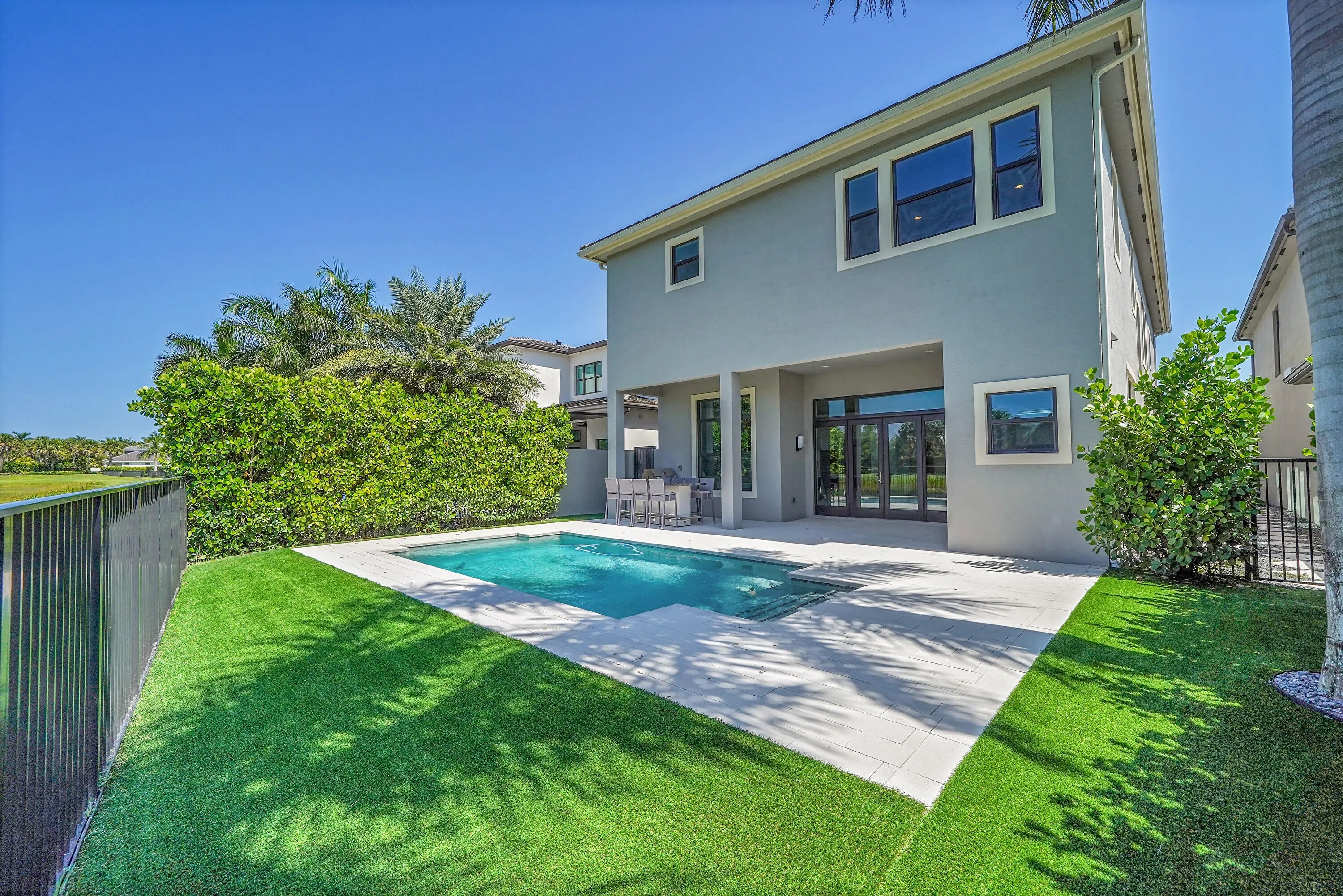 Finally a home that lives up to expectations. This Anabelle floor plan has a custom pool and is ideally situated on a lake. The kitchen has artic white stacked cabinets and a large island with quartz countertops. Additional highlights include: 24x24 porcelain tile on the 1st floor and wood floors upstairs. 2-story living room with wet bar, club room, and primary bath with upgraded cabinets coupled with marble counters. Whole house generator, w/warranty, Outdoor summer Kitchen & Bar, Whole house water purification system. Custom Landscaping Luxury living is redefined at Boca Bridges, complete with a 27,000 SF Clubhouse set on over 7 acres. Residents have access to fabulous resort amenities, including a gourmet restaurant, beach entry pool, kids splash pad, tennis and pickleball.