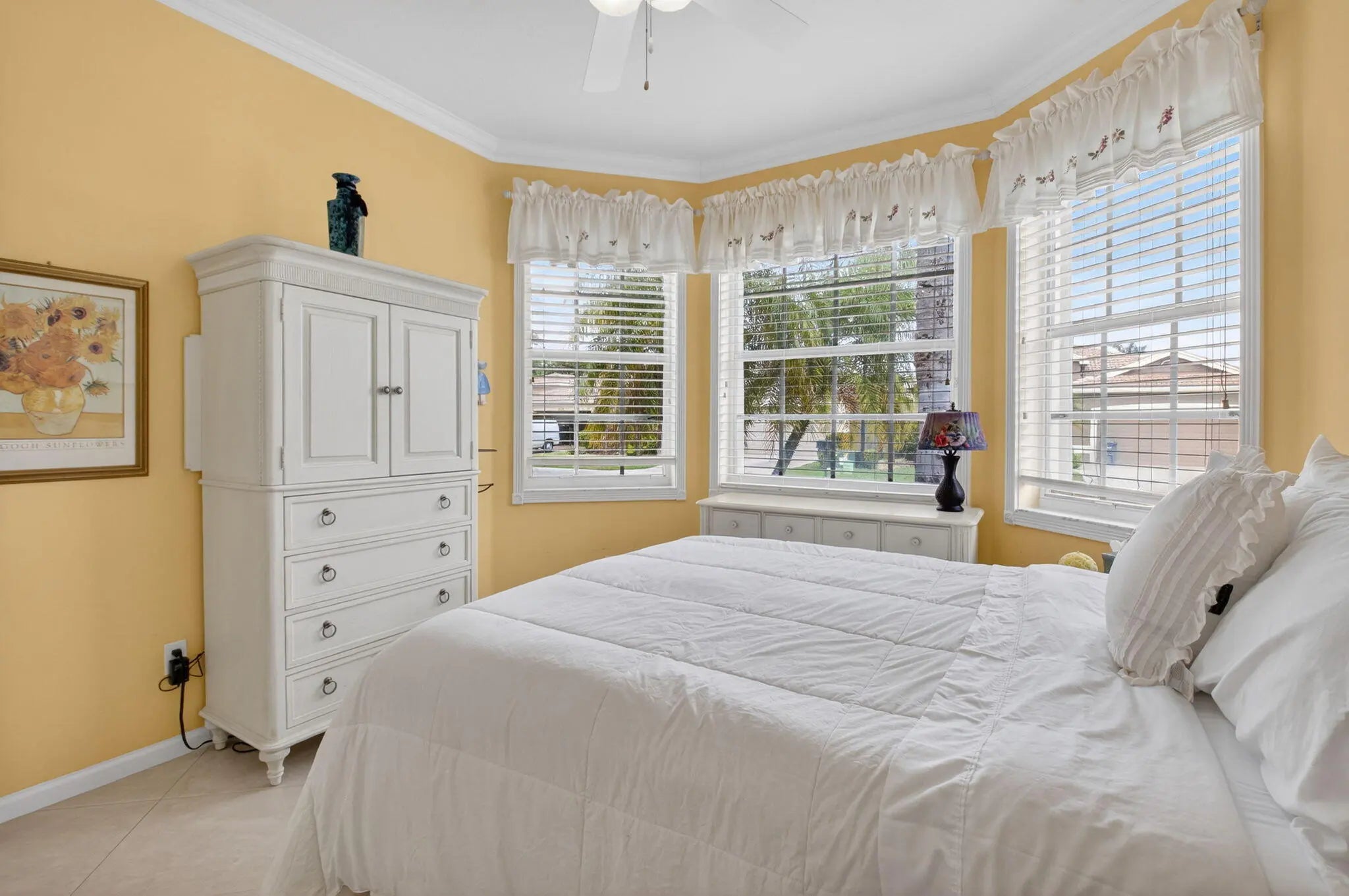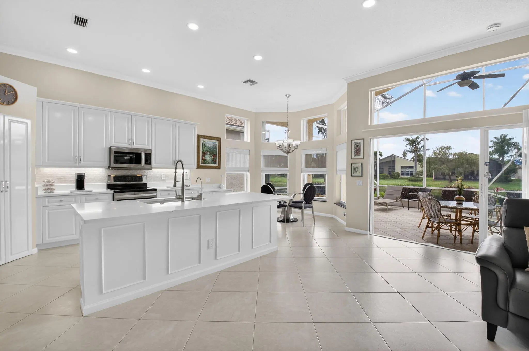 COME SEE THIS LOVELY CARIBBEAN MODEL ON THE WATER W/ A SPECTACULAR UPDATED KITCHEN. ENTER THE FOYER WITH DOUBLE TRAY CEILINGS AND IMMEDIATE VIEWS OF THE LAKE. THE DINING ROOM HAS BEAUTIFUL ARCHITECTURAL DETAIL IN THE CEILINGS ALSO. THE UPDATED KITCHEN HAS WHITE CABINETS W/ UNDER MOUNT LIGHTING, BOX MOLDING ON THE ISLAND, QUARTZ COUNTERTOPS, GLASS TILE BACKSPLASH, STAINLESS STEEL APPLIANCES & A BREAKFAST NOOK THAT OVERLOOKS THE LAKE. FAMILY ROOM HAS CROWN MOLDING, TELESCOPIC SLIDING DOORS & TRANSOM WINDOWS. PRIMARY BEDROOM W/ TRAY CEILING ALSO OVERLOOKS THE LAKE. THIRD BEDROOM USED AS OFFICE. SPACIOUS LAUNDY ROOM. POWDER ROOM HAS A LOVELY TRENDY VANITY. TOUR THE NEWER RENOVATED & EXPANDED CLUBHOUSE & NEWER PICKLE BALL COURTS. ALL MEASUREMENTS DEEMED ACCURATE & SHOULD BE VERIFIED .