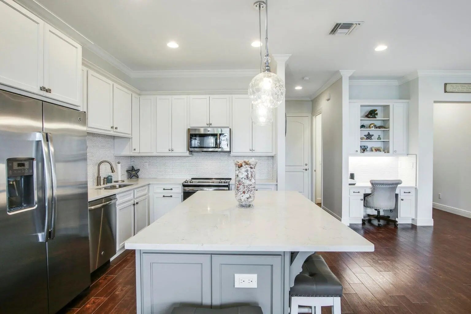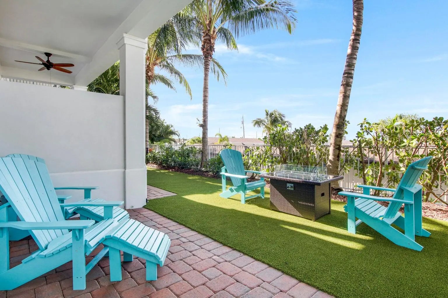 WALK TO THE BEACH! Like new Ocean Breeze townhome rental in Juno Beach. 3 bedrooms, 2.5 baths & a 2-car garage. This townhome is well-appointed with stainless steel appliances, quartz countertops, upgraded cabinets & a huge center island. Tile & wood flooring in the entire townhome, crown molding, updated lighting, living/dining & (no carpet at all), a built-in desk area & a first-floor half bath, 3 bedrooms on the second floor, plus the laundry room with full-size washer & dryer plus hurricane impact windows. The oversized owners suite includes 2 walk-in closets & a private balcony, and the master bath has a large shower enclosure and dual sinks. The secondary bathroom has a shower/tub enclosure. The exterior rear yard includes all synthetic turf. This immaculate townhome is a must see.