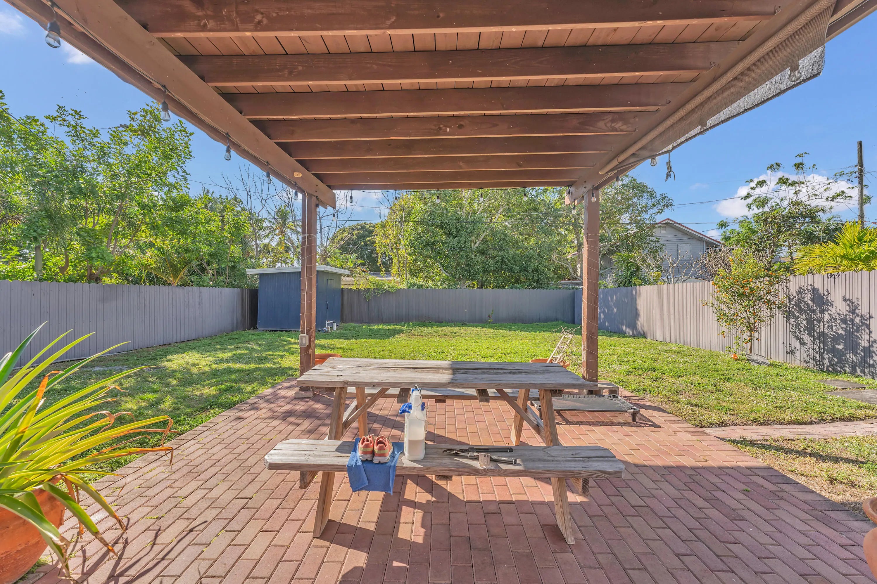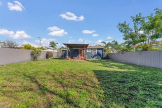 Just 3 miles from the beach! No HOA, Charming 2-bed, 1-bath home offering privacy, comfort, and convenience. Features a newer gate and fence, spacious backyard with a kumquat/tart orange tree, perfect for entertaining or relaxing outdoors. Prime location near shopping, I-95, the zoo, PBI Airport, and downtown. Recent updates include a fully renovated kitchen (2021), new interior/exterior paint, flooring, doors, remodeled bathroom, shed, and front gate. A/C (approx. 6 yrs) and water heater (5 yrs) well-maintained. Home feels larger than the stated square footage, with room to add a pool.