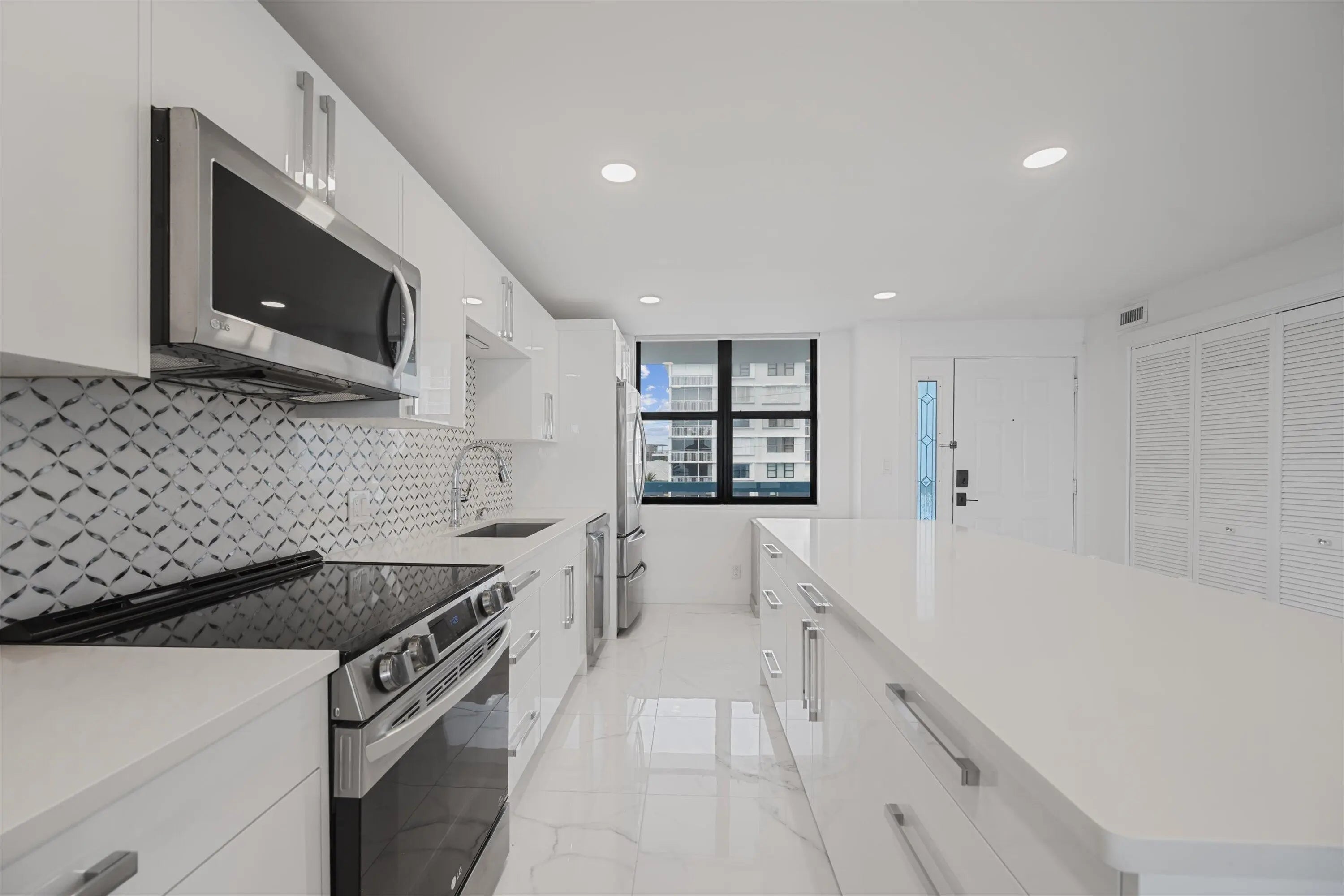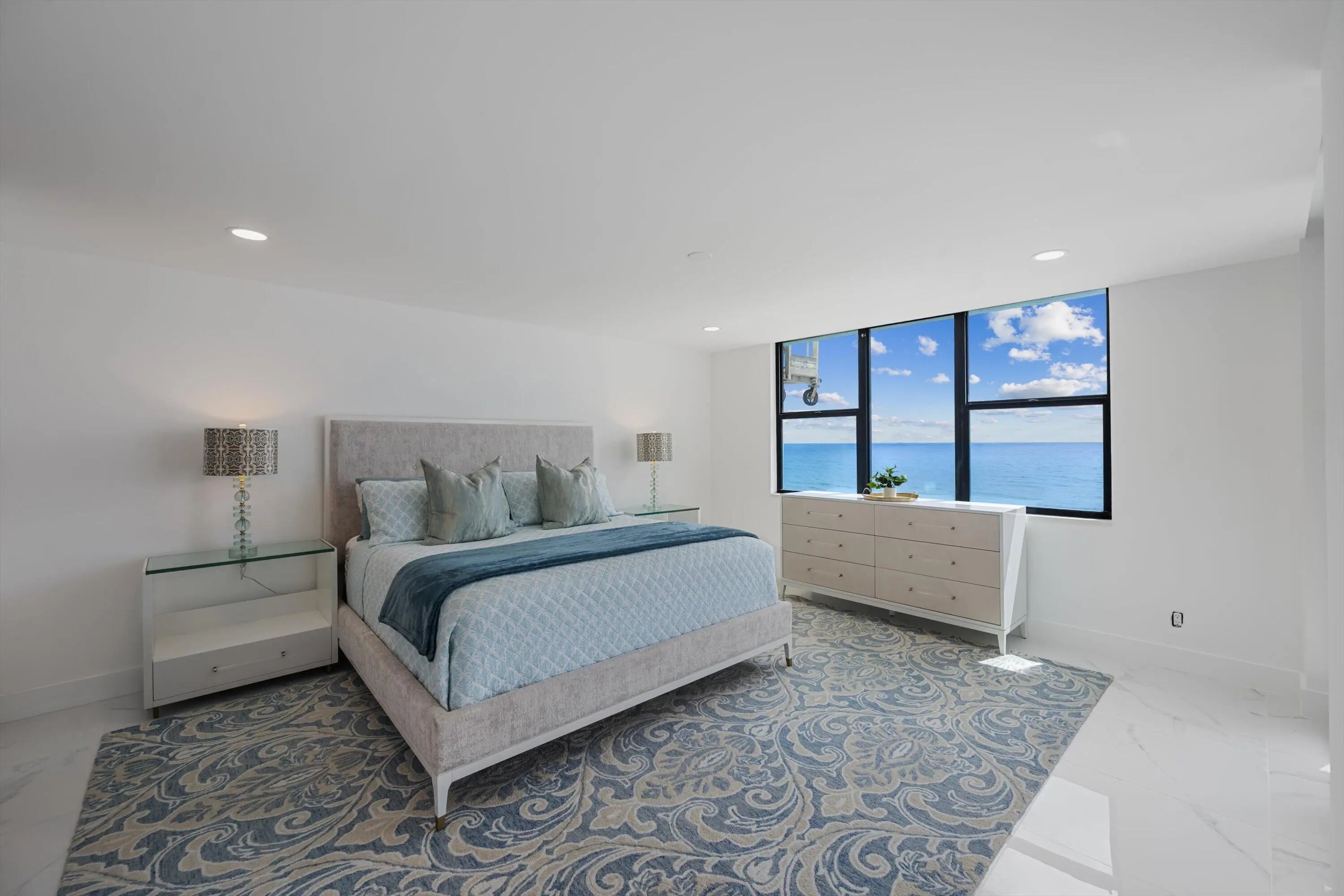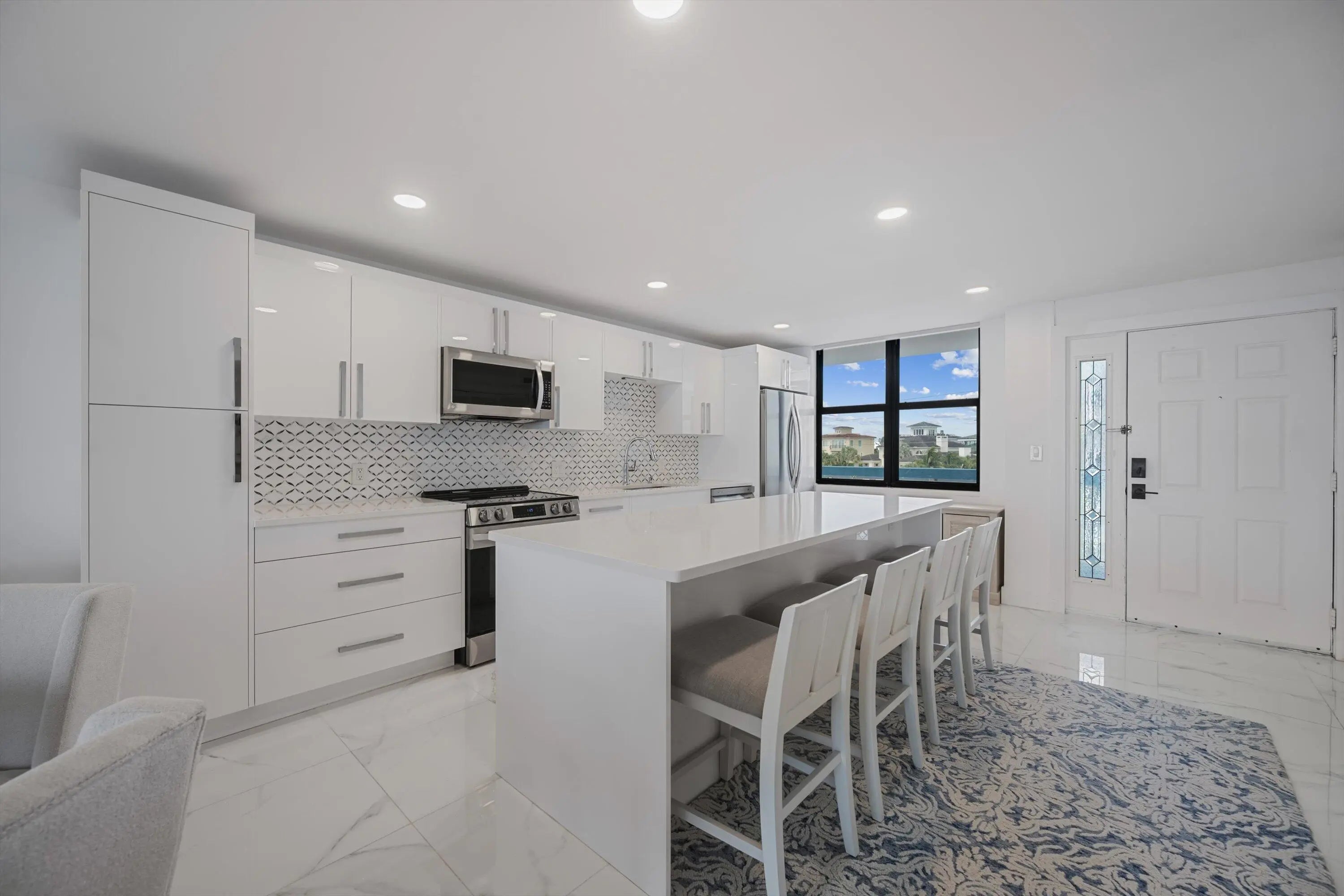 Available as a seasonal or annual furnished rental- Spectacular newly renovated oceanfront unit at The Surf with endless and panoramic ocean views! The condo has been redone top to bottom with an elegant and chic style featuring a beautiful island kitchen that is open to the great room all overlooking the Atlantic Ocean! The European style cabinets are exceptionally high quality with a contemporary flair and are very functional with lots of storage. The beautiful quartz countertops and designer backslash compliment perfectly the entire kitchen. The white porcelain floors with subtle gray veins are amazing and are throughout the entire unit. The master suite overlooks the sand and ocean and features a new spacious and luxuries bathroom suite along with a large walk-in closet. SEE MORE..