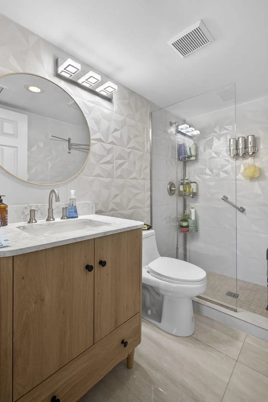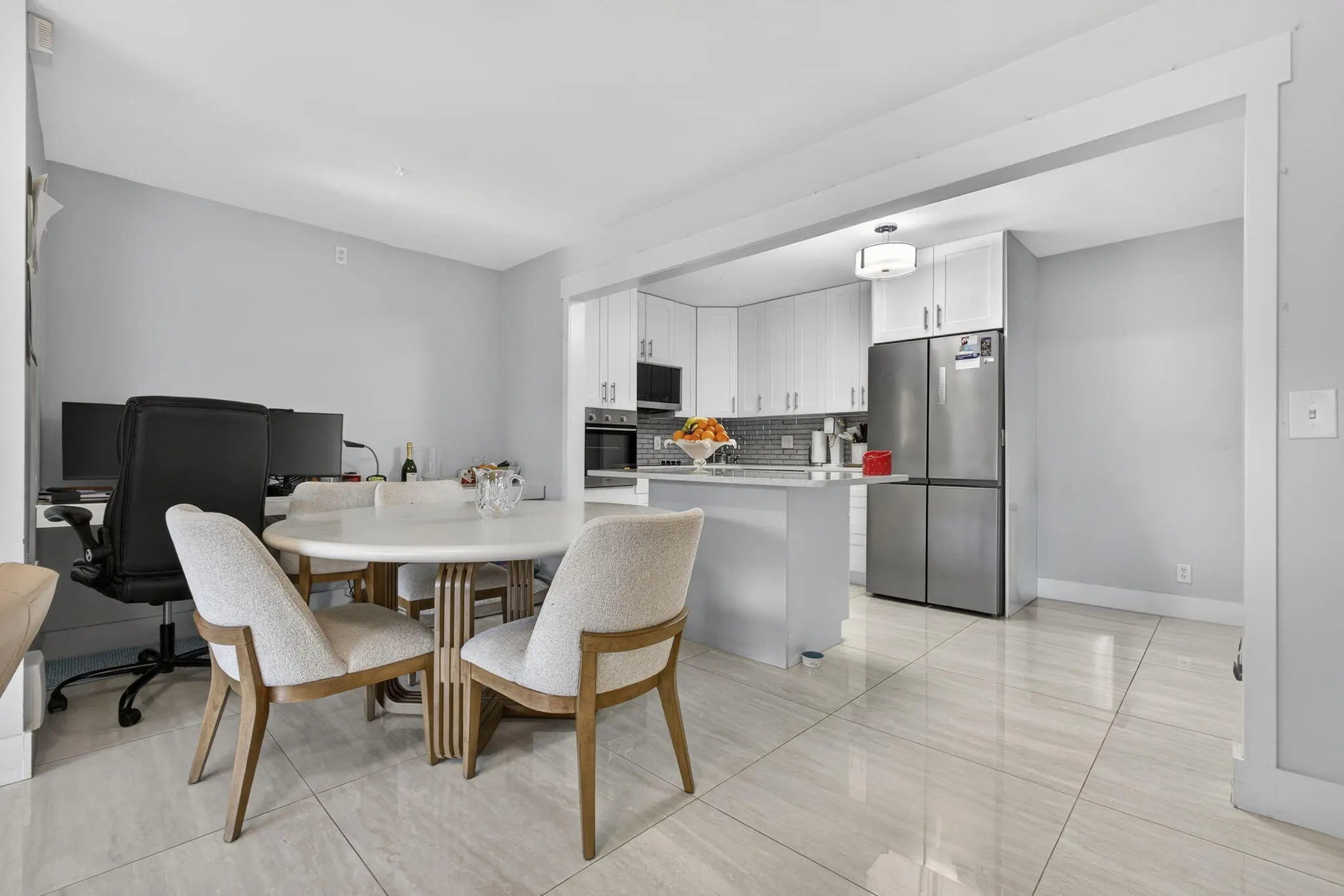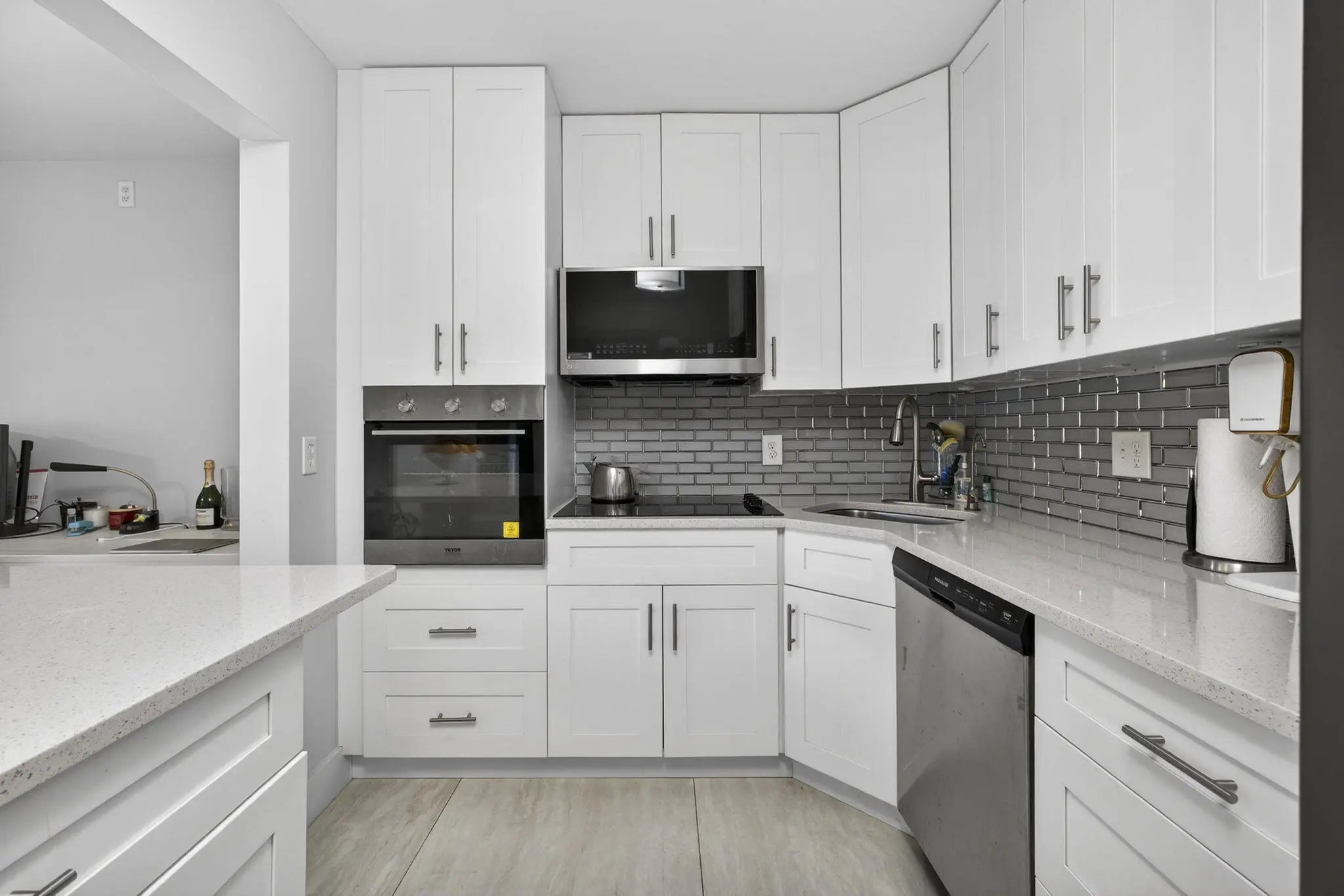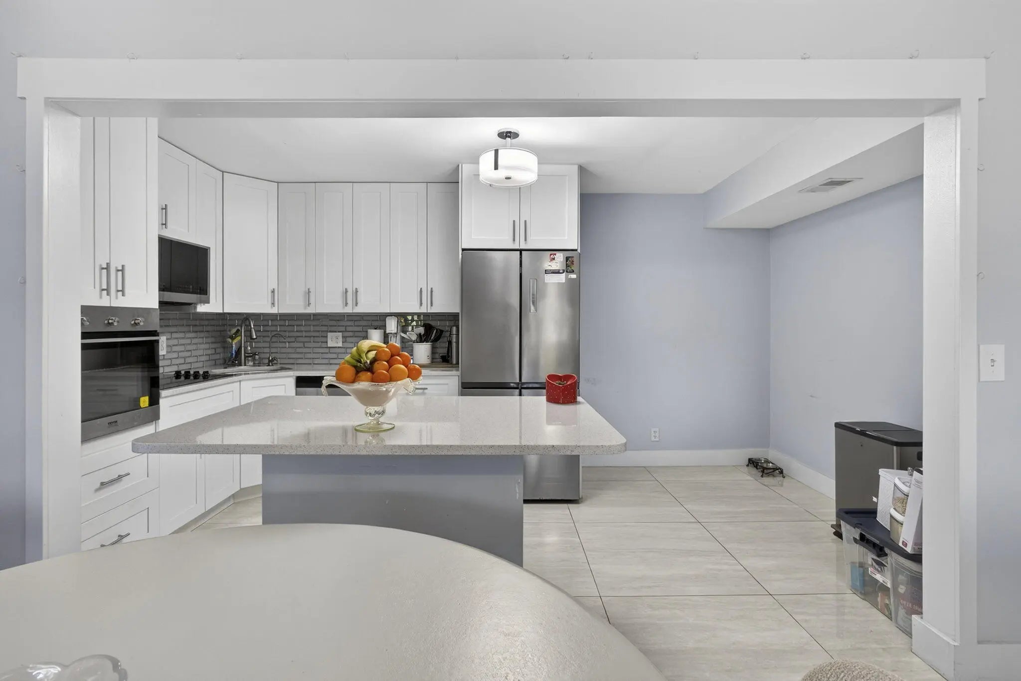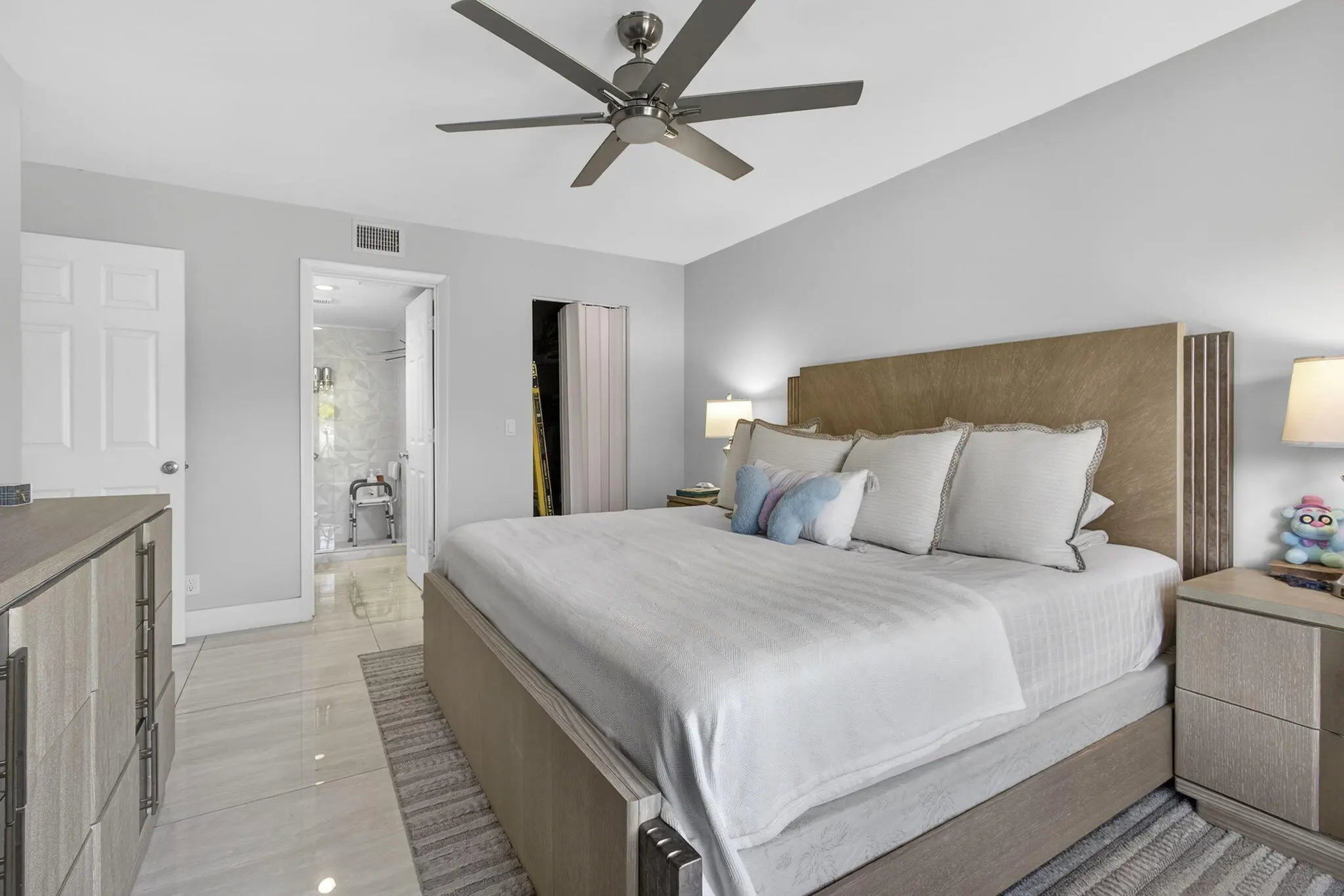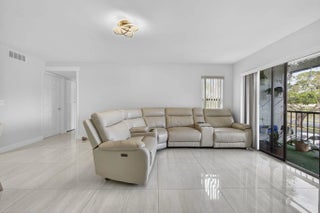 Discover effortless South Florida living in this beautiful modern condo with a screened balcony! Featuring 2 bedrooms and 2 bathrooms, this home has been thoughtfully renovated for year-round comfort. The upgraded kitchen boasts stainless steel appliances, quartz countertops, and modern finishes. Bathrooms have been fully renovated with custom wall to wall tiles, contemporary vanities and mirrors. Luxurious oversized porcelain tiles flow throughout the bright and spacious interior, creating a move-in ready space that's both stylish and functional. Located in a 24-hour guarded and gated community. Enjoy great amenities including clubhouse, pool, tennis, racquetball, and lots of walking and biking trails. Close to shopping, restaurants, entertainment, and 10 mins. drive to multiple beaches
