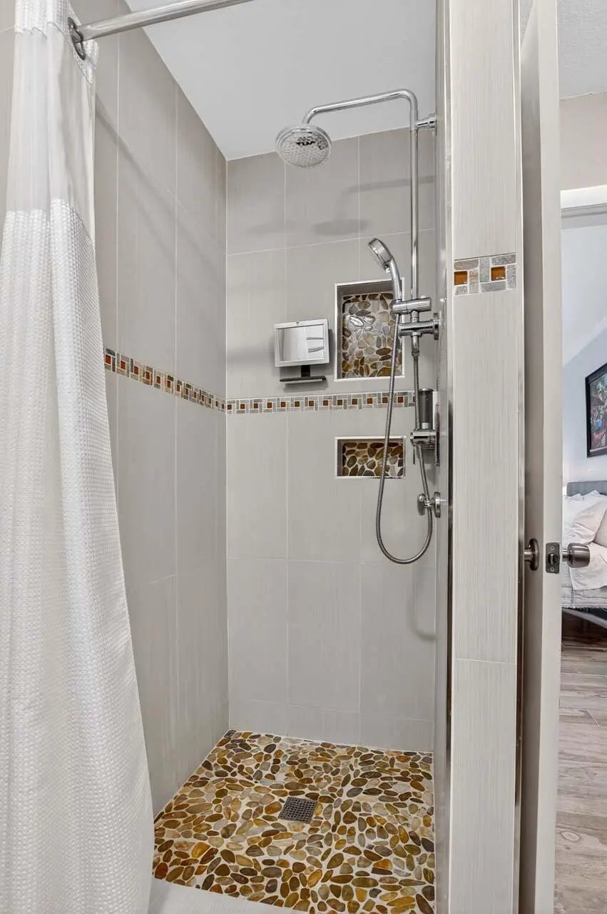 Kings Point's most uniquely updated condo. This beautiful 2-bedroom home features a stylish island kitchen with modern finishes and a well thought-out renovation that created a true en suite bedroom with sliders opening to a private balcony overlooking peaceful garden views. Other features include custom doors, a tankless water heater (2022), and AC (2015). Experience resort-style living with 3 clubhouses, 2 golf courses, bistro & cafe, salon, heated indoor/outdoor pools, lap & resistance pools, tennis, fitness center, theater, arts & crafts, billiards, and a courtesy bus service--all just minutes to vibrant Atlantic Ave and the beach!