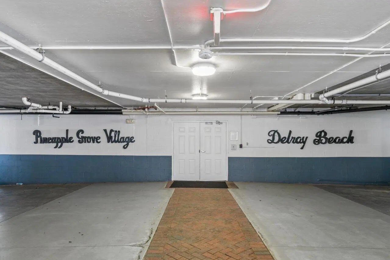 Call the heart of Pineapple Grove home w/ this spacious 1/1 corner ''interior'' condo! Only steps from Atlantic Ave's trendy district w/ dining, exciting nightlife, art galleries, shops, & just minutes to the beach! Features hardwood floors, newer appliances, full size washer/dryer, impact windows, & one the best positioned units in the building. Optimal layout flows from the open kitchen w/ plenty of counter/storage space & bar seating into the large living area which looks out to the open balcony & down to the tree-lined street below. This unit has 2 storage units, & 1 assigned covered parking space in the main gated garage. Pineapple Grove offers a clubhouse, heated swimming pool, gym, yoga room, cardio rooms, sauna, & business center.